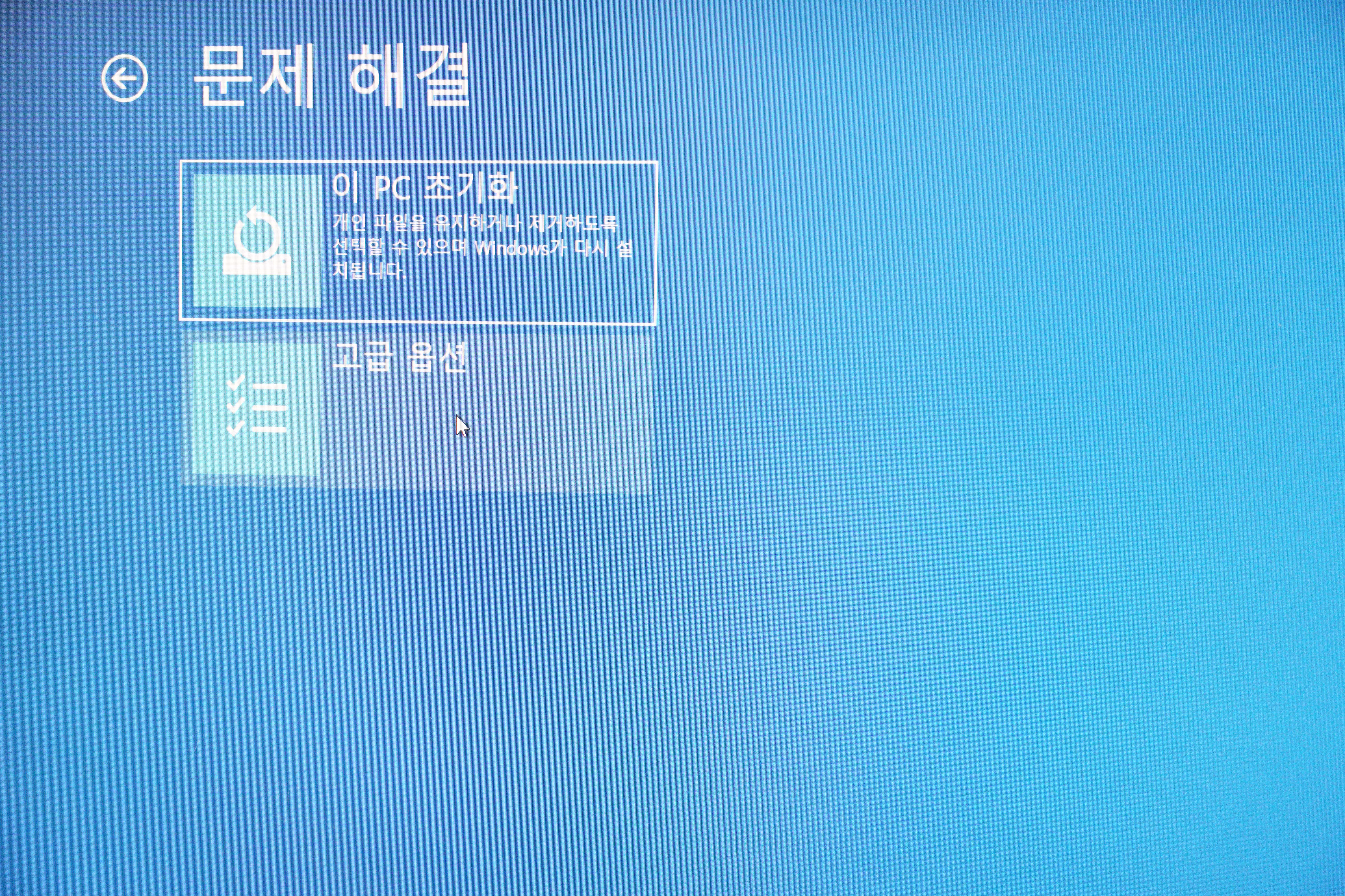 문제 해결 창이 뜨면 고급 옵션으로 들어갑니다.