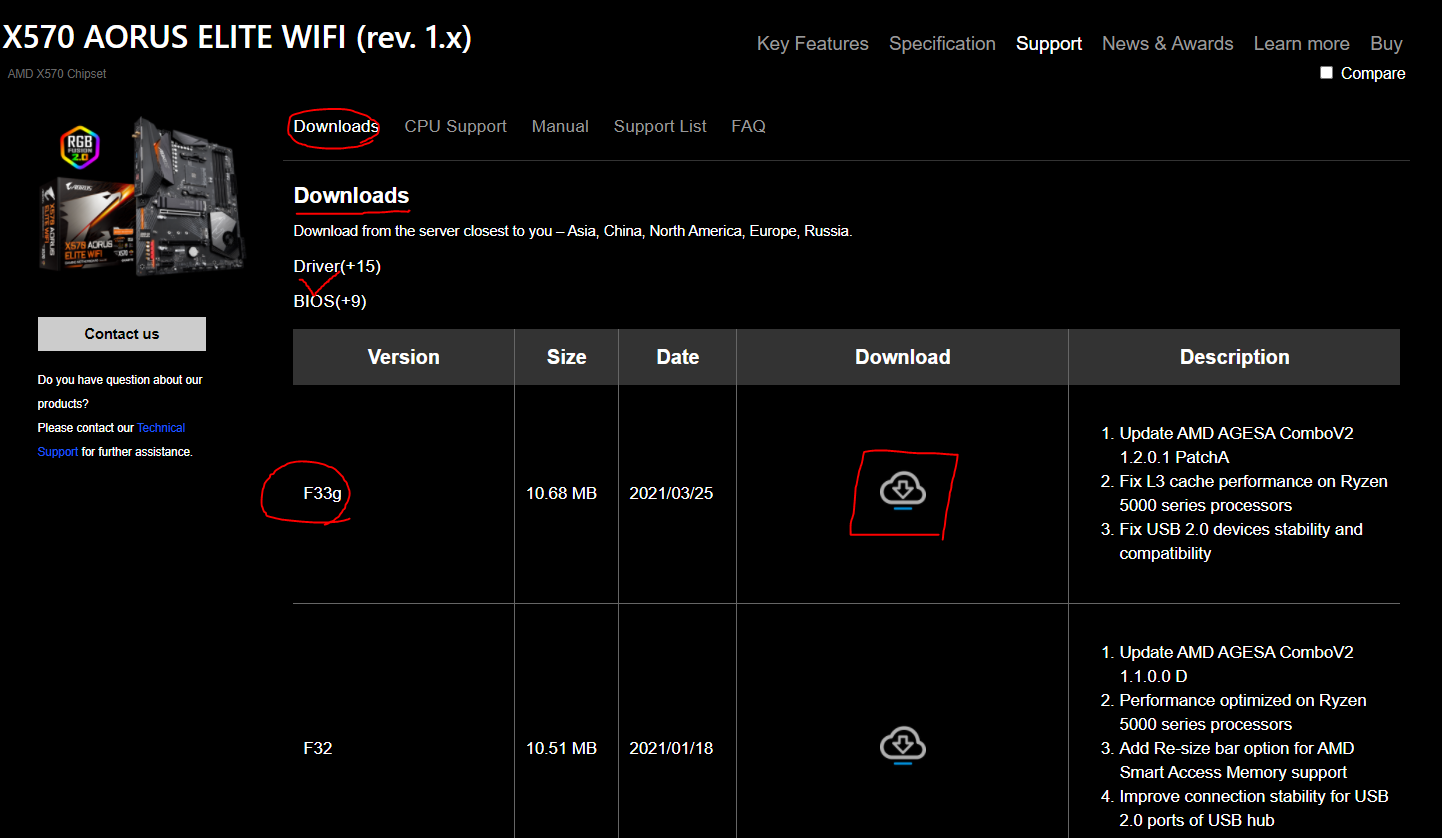 이후 BIOS를 찾아 최신버전, 혹은 원하는 버전을 찾아 다운받습니다.