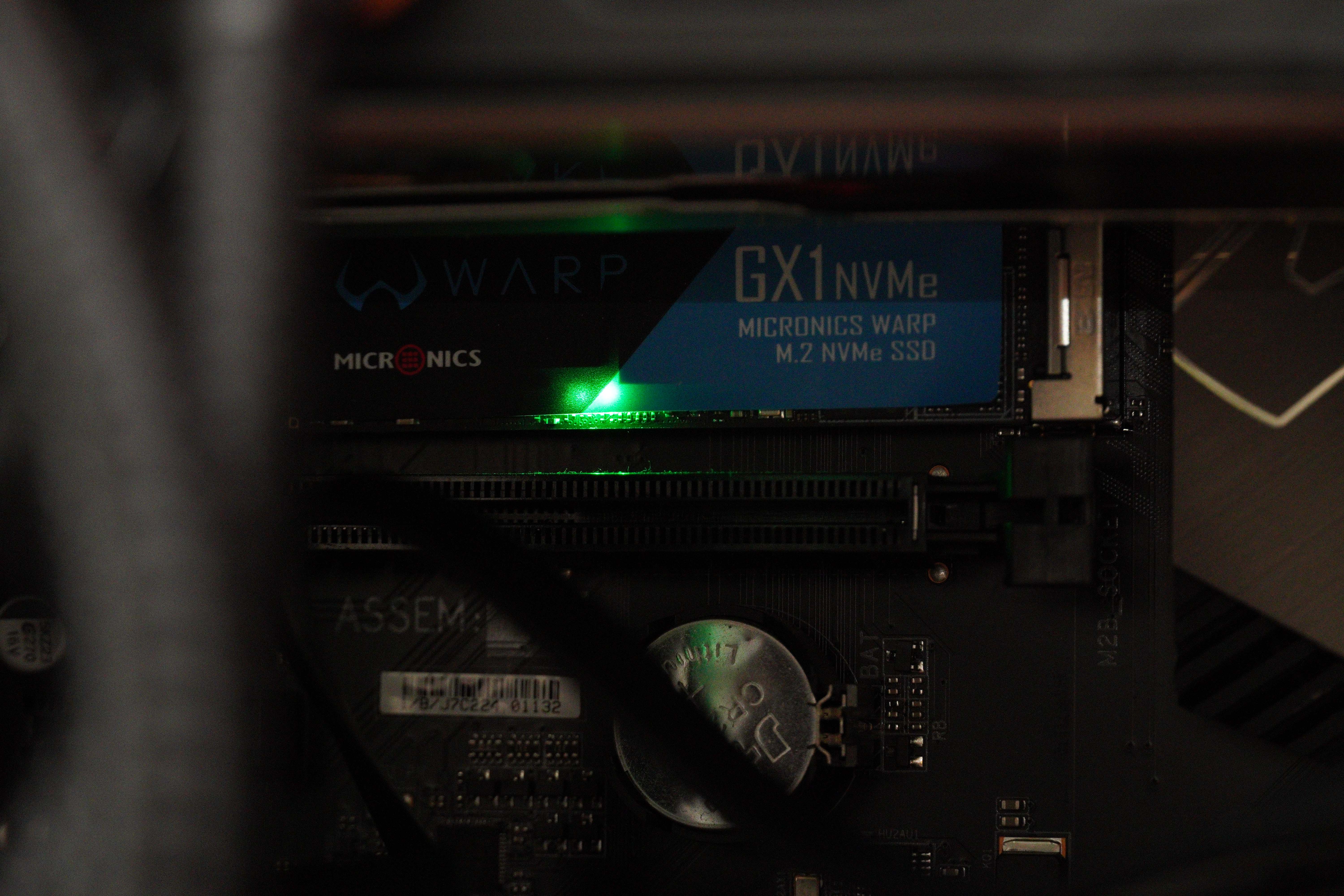 마이크로닉스 WARP M.2 NVME SSD의 특징이라고 한다면, 읽기쓰기를 할 때 저렇게 SSD에서 불빛이 들어옵니다.