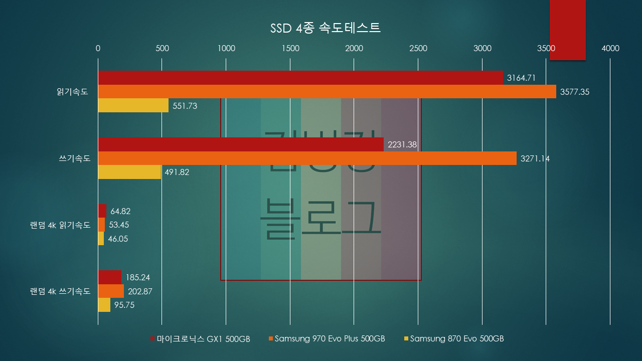SSD중 가장 높은 성능을 지닌 삼성 SSD와 비교해보았습니다.