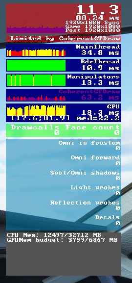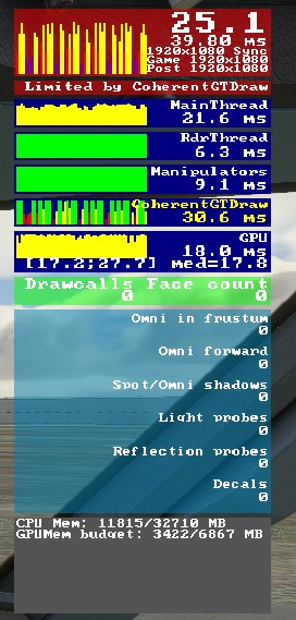 당시 환경에서는 Coherent라고 불리는 구형 엔진의 결함으로 인해 프레임이 매우 낮게 나오는 상태였습니다.(현재 프레임은 훨씬 높습니다.)