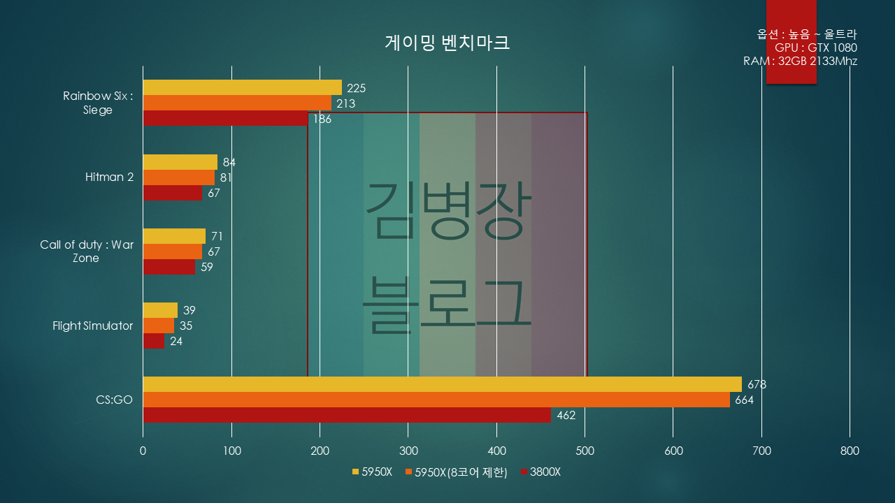 더 대단한건, 오늘 진행한 벤치마크가 모두 2133MHz 메모리에서 진행되었다는 것이죠. 요즘 나오는 메모리들은 대부분 시작 클럭이 3200MHz 이므로, 더 높은 성능을 기대해볼 수 있습니다.