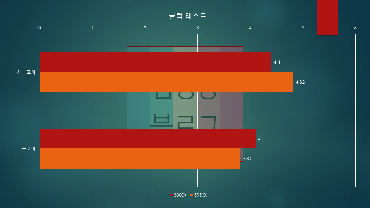 단일코어 성능은 5950x가 훨씬 높지만, 올코어 성능은 떨어집니다. 코어가 많은만큼, 온도가 비슷하기 때문에, 올코어 클럭은 떨어질 수 밖에 없죠.
