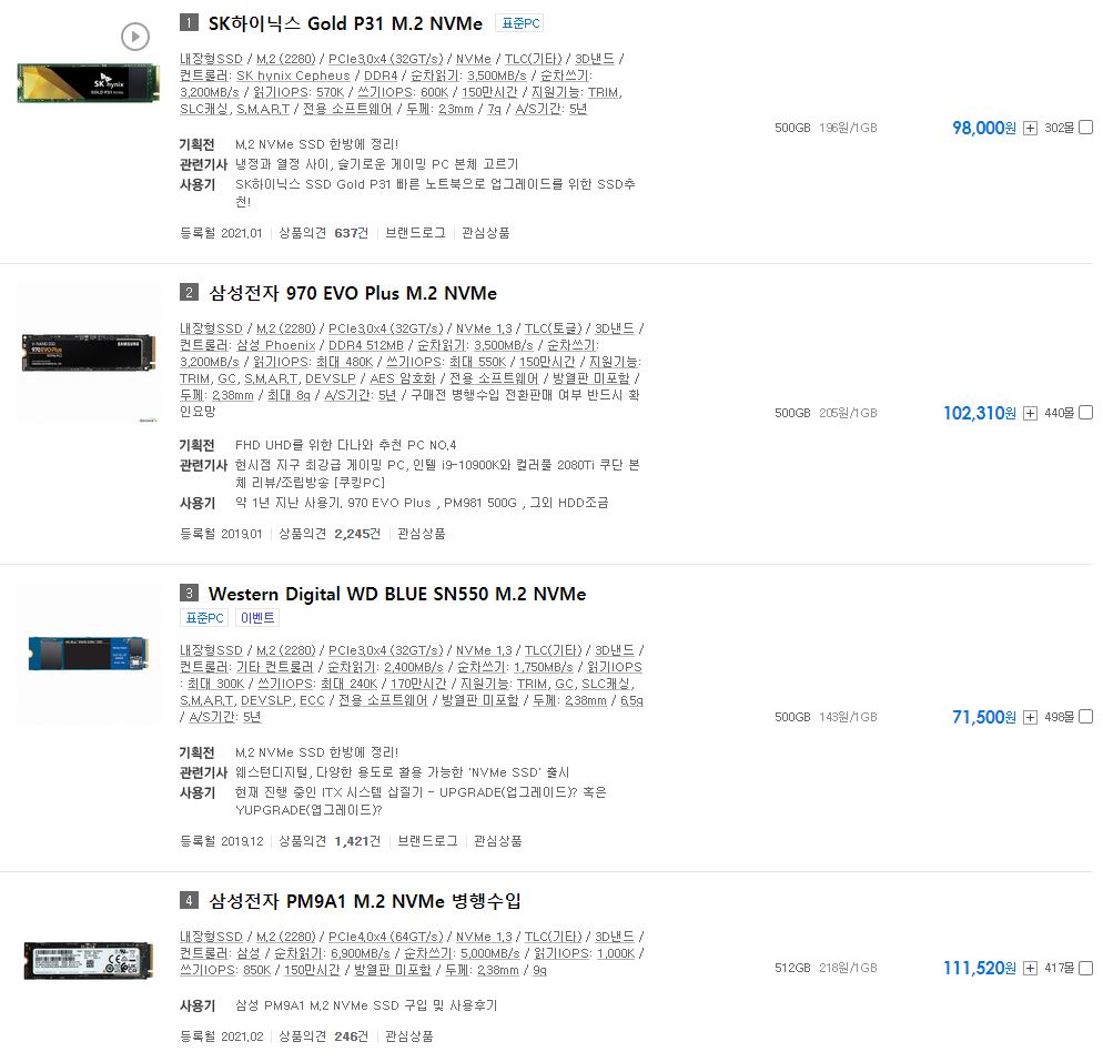 이 가격이라면 타 M.2 NVMe SSD에 비해 저렴하기 때문에 메리트가 있다 생각됩니다.
