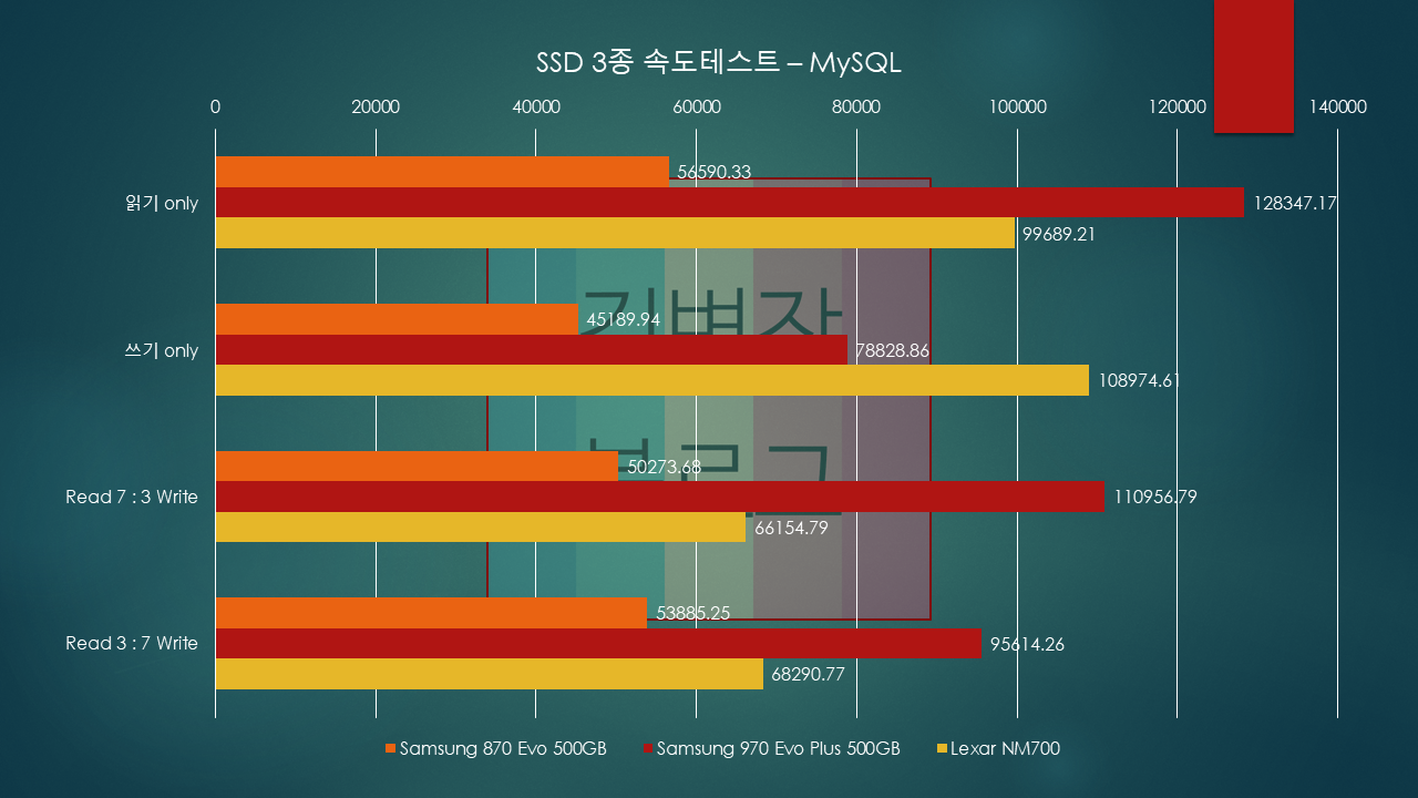 8GB 가량의 데이터베이스 MySQL 기반 데이터베이스 서버를 통해, 읽기 / 쓰기 / 동시다발적 테스트를 진행하였습니다.