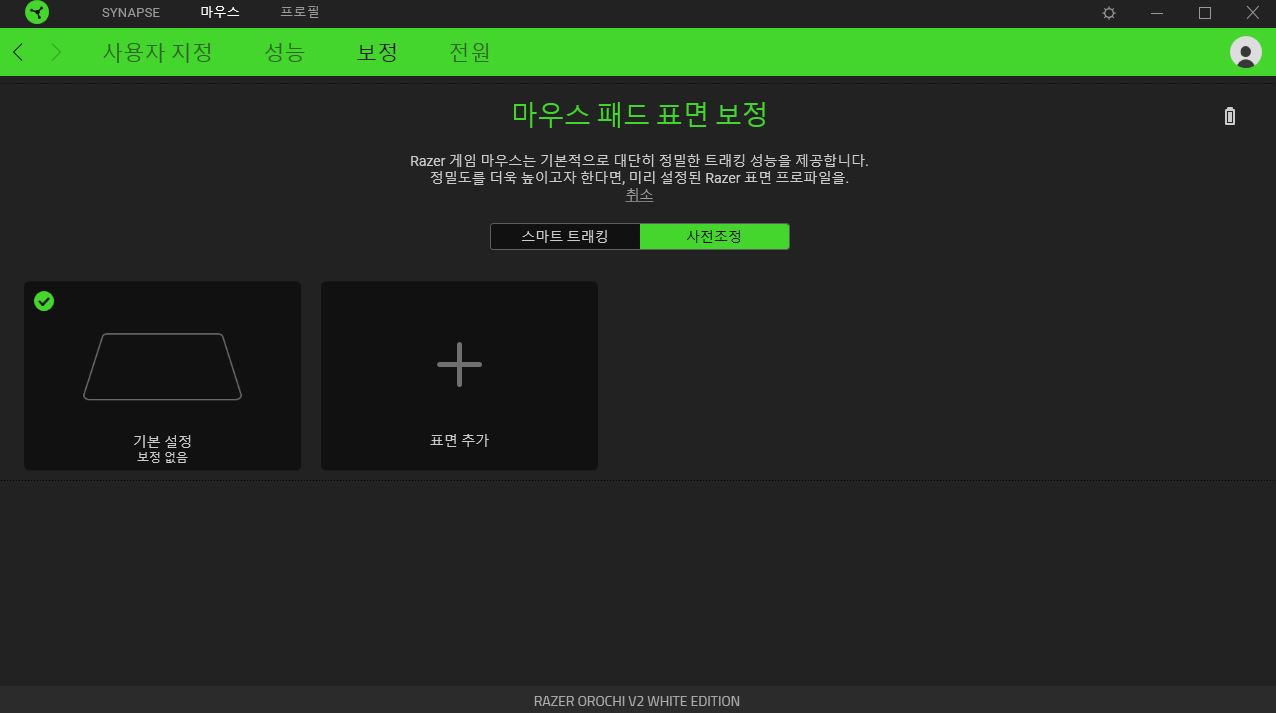 레이저 패드를 사용하고 있다면, 사용하는 레이저의 패드에 맞는 표면보정 프로파일을 사용할 수 있습니다.