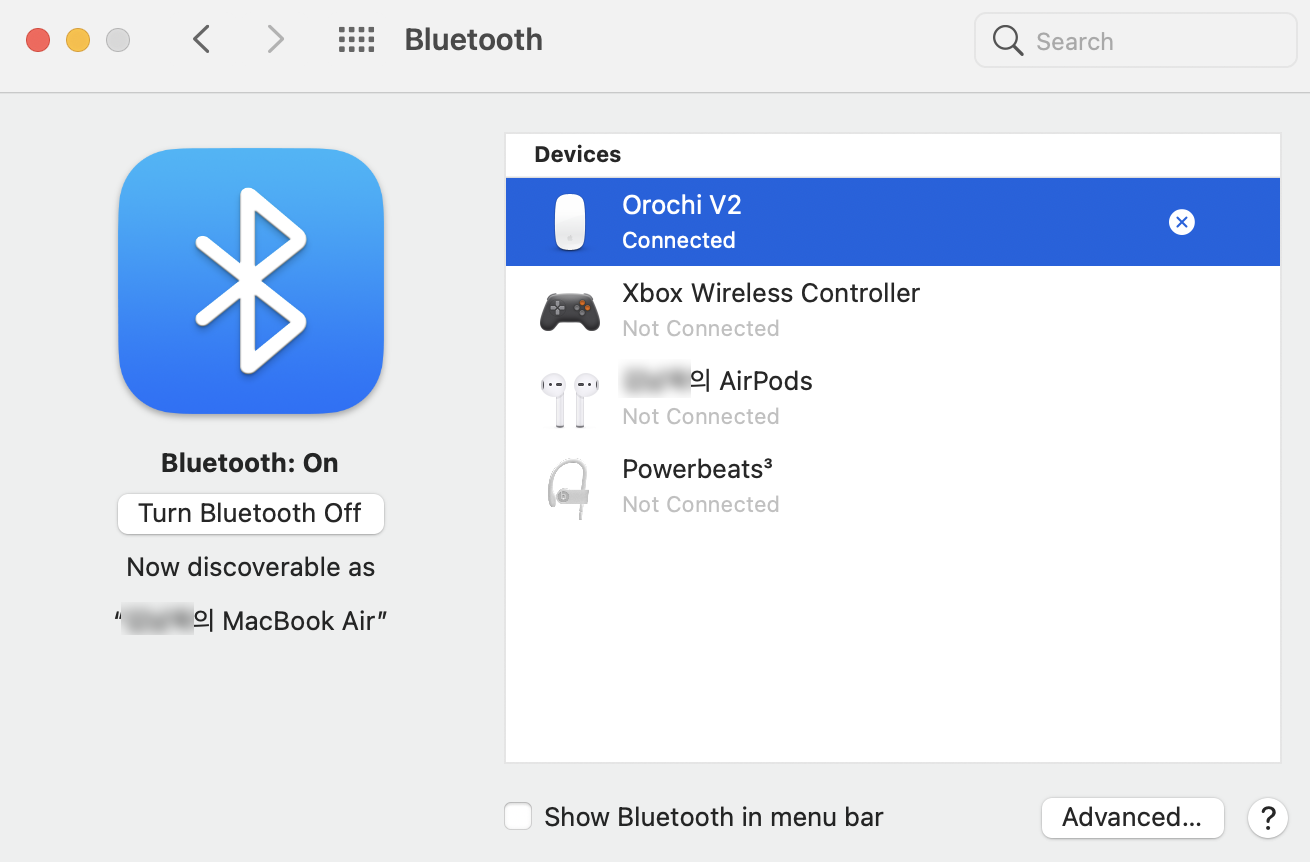 저같은 경우 외부에 나가면 맥북을 통해 작업하는데, 나갈때 맥북과 오로치 마우스만 그대로 들고가서 작업하면 됩니다.