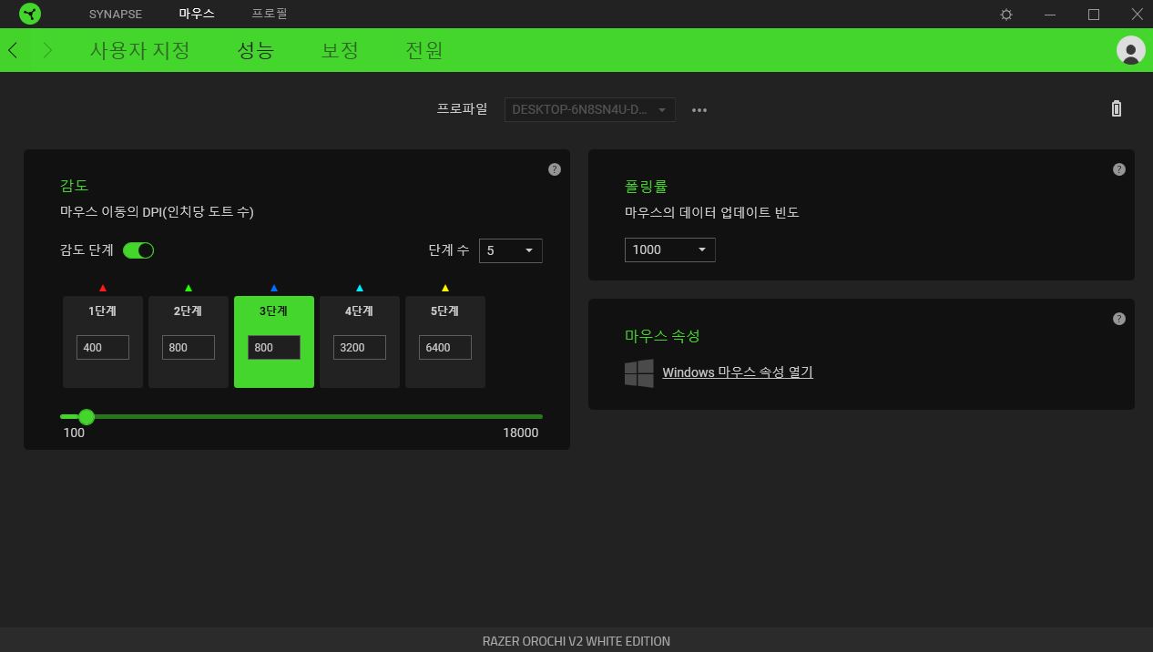 감도 버튼을 통해 감도를 조절할 수 있는 감도 단계를 설정할 수 있으며, 최대 5개까지 설정이 가능합니다.