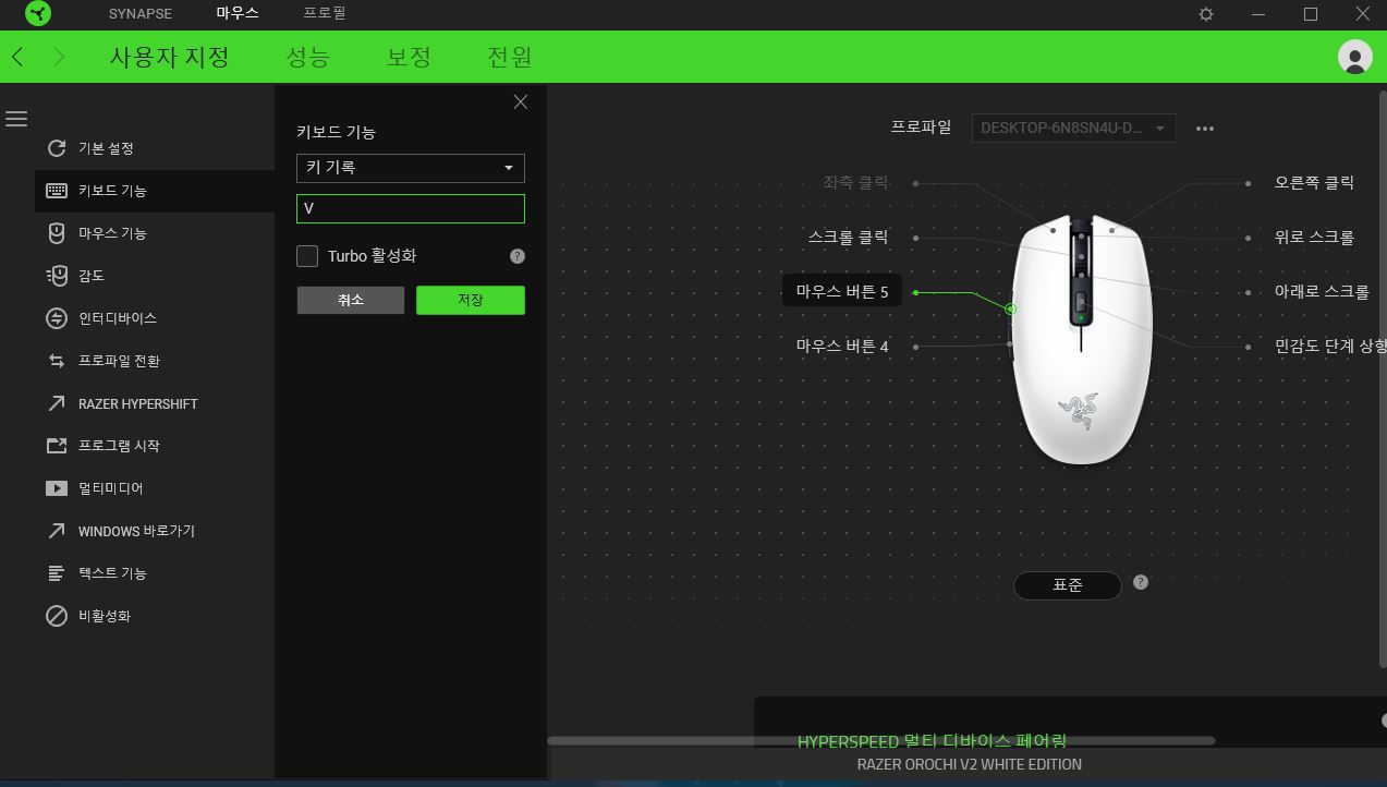 오로치는 2.4Ghz의 HyperSpeed 모드와 블루투스 모드 2개가 존재하는데, 이게 바로바로 사용이 가능합니다.