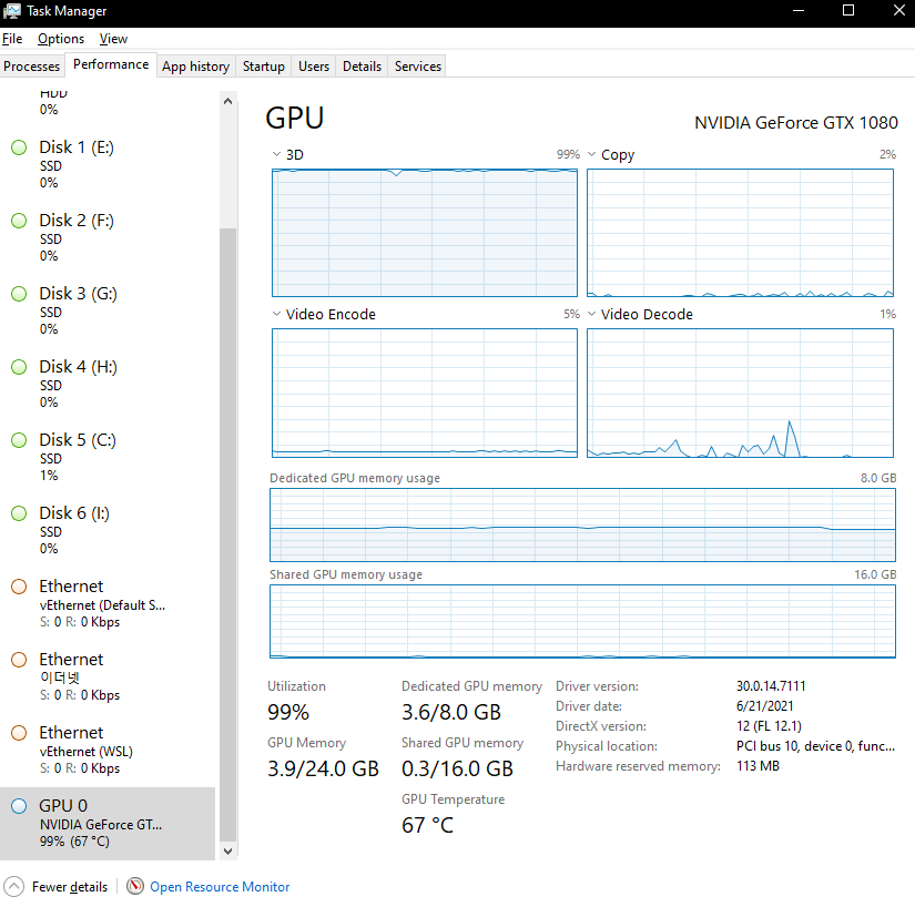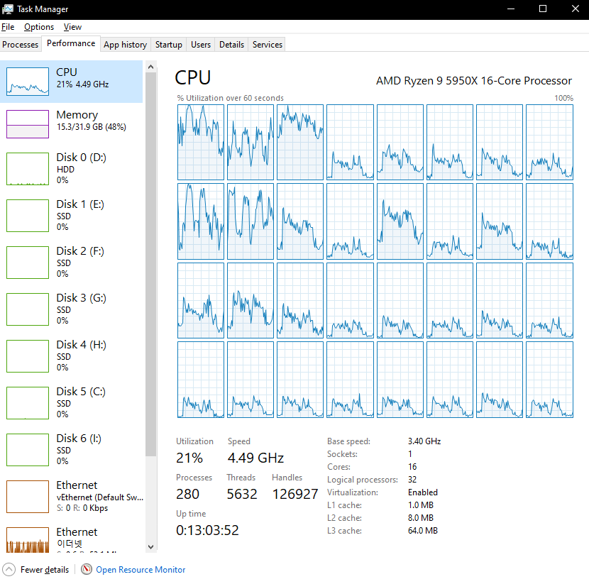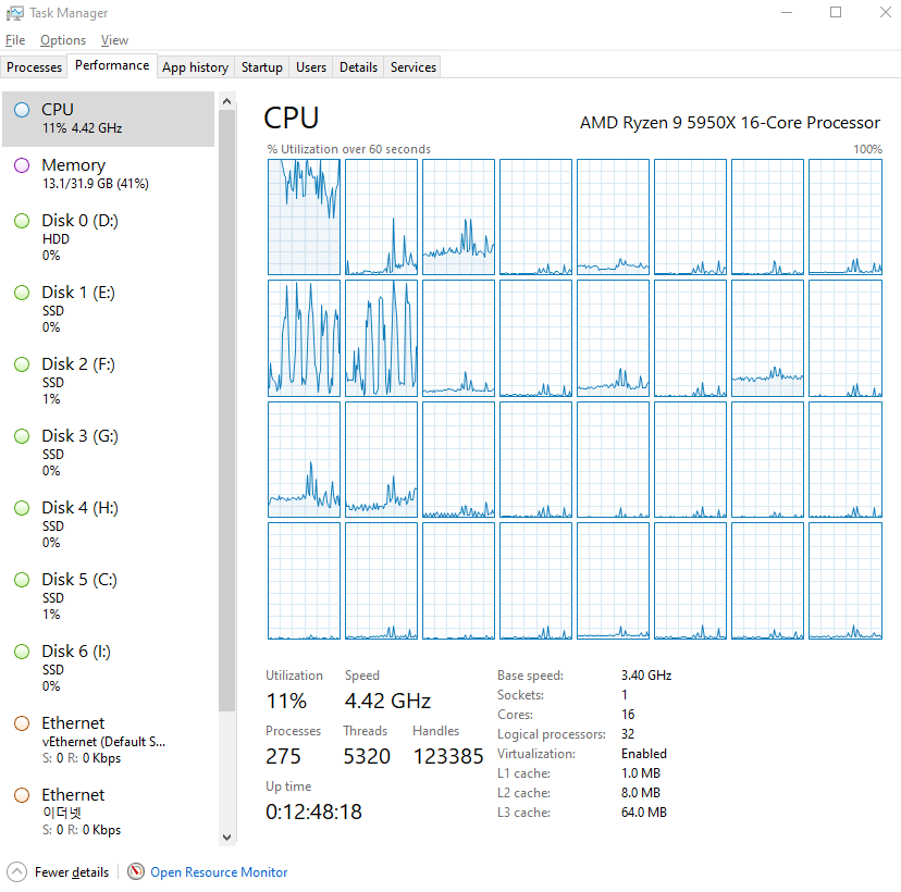 제가 사용중인 CPU는 5950X로, CPU 성능이 월등하지만 GPU 성능이 턱없이 부족하죠.