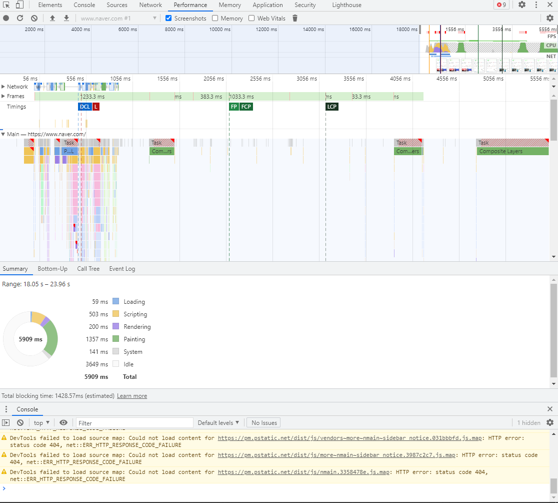 실제로 우리가 보는 부분은 Painting 영역이므로, 로드되며 보여지기까지 매우 큰 차이가 나는것이죠.