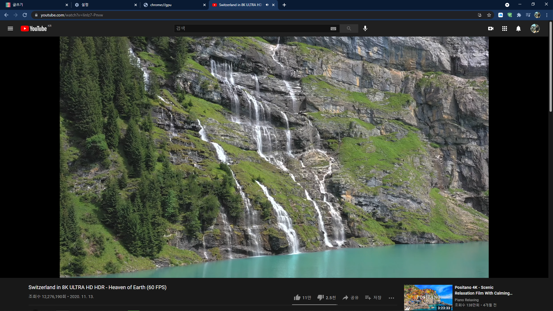 제가 사용중인 GPU가 GTX1080이라 4K 해상도의 동영상에서, 하드웨어 가속을 켜면 끊기고, 끄면 단독에서만 60fps, 이외 프로그램이 동작하면 30fps까지 내려갑니다.
