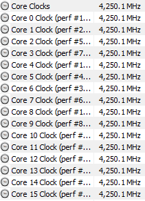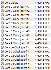 이렇게 Core Clocks에 가서 왼쪽의 > 를 눌러 자세히 보게 해주세요.