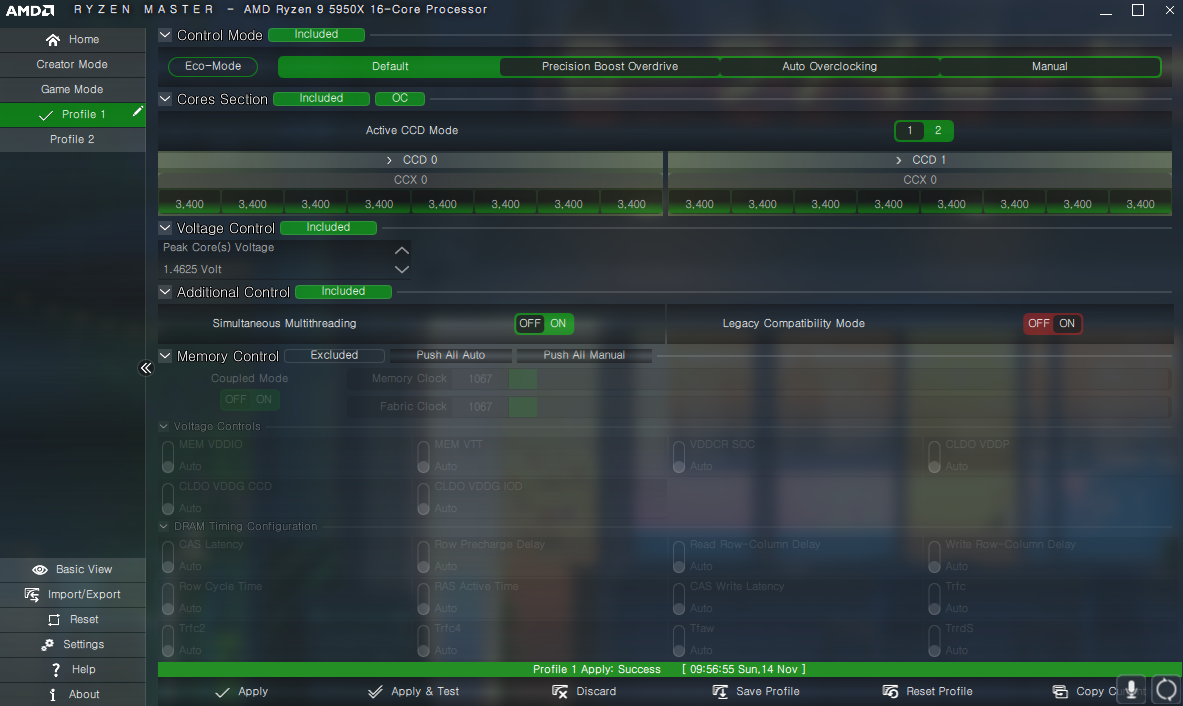만약 시간이 많이 있으시다면, 위의 테스트에서 PPT, TDC, EDC를 줄여가며 최적의 값을 찾아보시면 됩니다. 저같은경우 저렇게 200 200 150이 최적의 값이였습니다(5950X 기준)