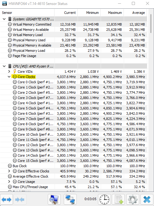 마지막으로 모니터링에 필요한 HWiNFO64 입니다. 역시 CPU 클럭을 모니터링 할 수 있는 다른툴이 있다면 사용하셔도 무방합니다.