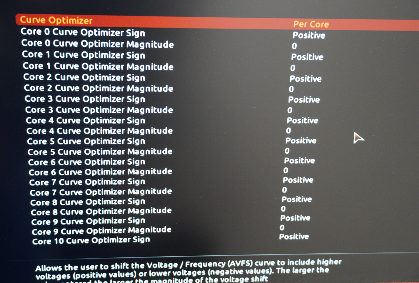 Curve Opmitizer를 Per core 혹은 All core로 할 수 있는데, 귀찮으시면 All core로, 나는 성능을 다 끌어올리겠다 면 Per Core로 하시면 됩니다.