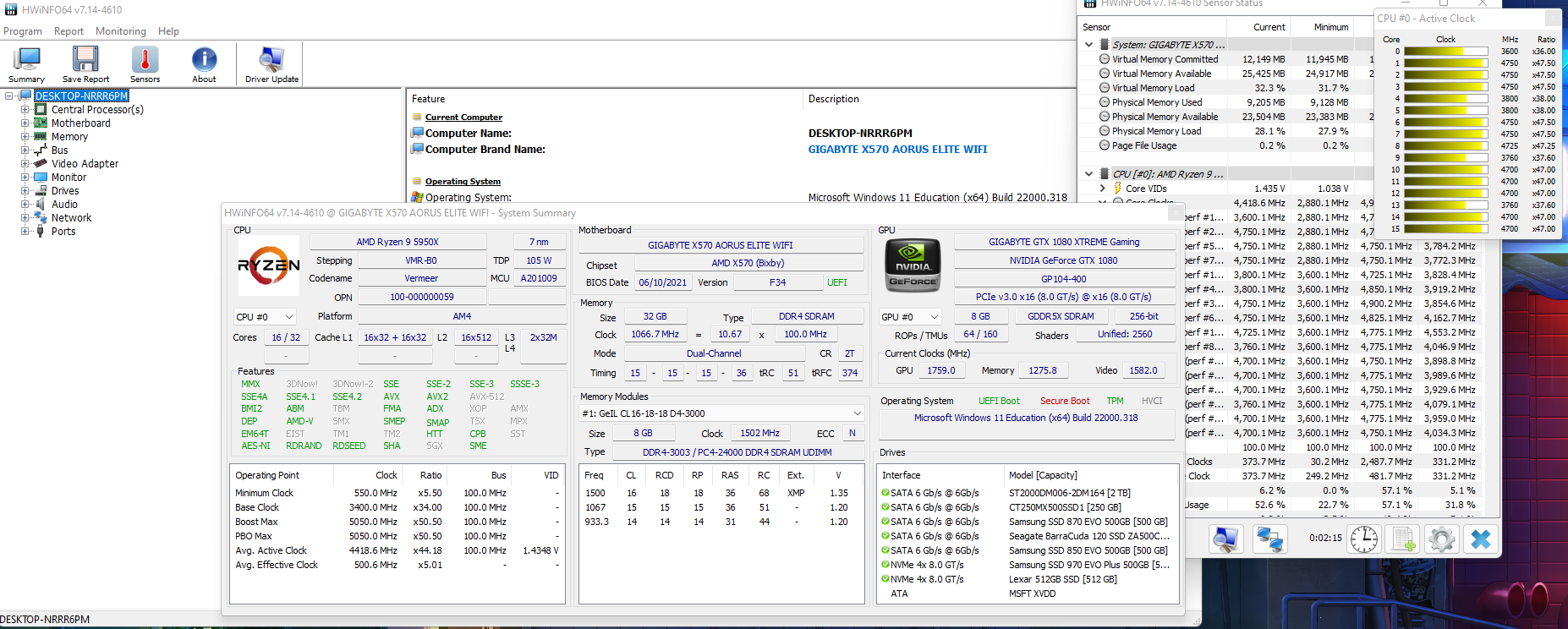 저같은 경우 5950X를 사용중이여서 수치가 다 높게 나와있습니다. 마우스커서를 가져가면,