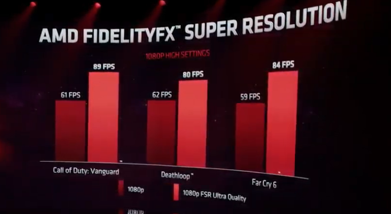 이번 AMD 발표 중 몇가지 핵심이 된 부분으로, GPU 기술들이 상당히 많이 강조되고 있습니다. FSR 기술의 경우에도 오픈소스로 소스를 열고, 여러 게임사에서 적용시켜 높은 성능향상을 이끌어내고 있으며,