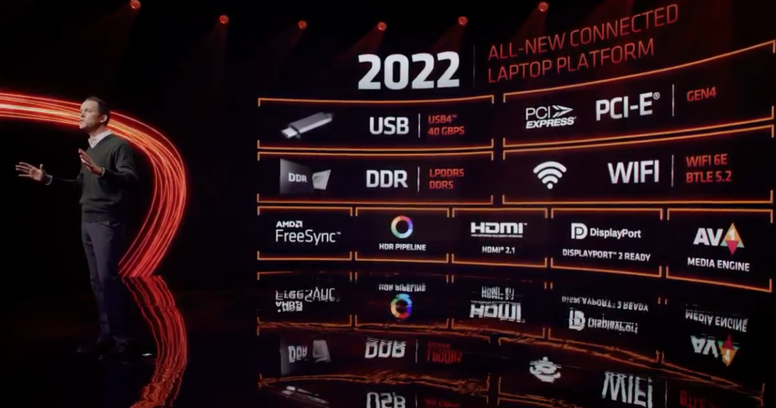 2022년 2월부터 출시되는 AMD 6000번대 모바일 프로세서를 탑재한 노트북에서, USB4, PCIe 4.0, DDR5 메모리, WIFI 6e, Display port 2.0, HDMI 2.1 등, 다양한 기술의 포함된 노트북을 만날 수 있다고 합니다.