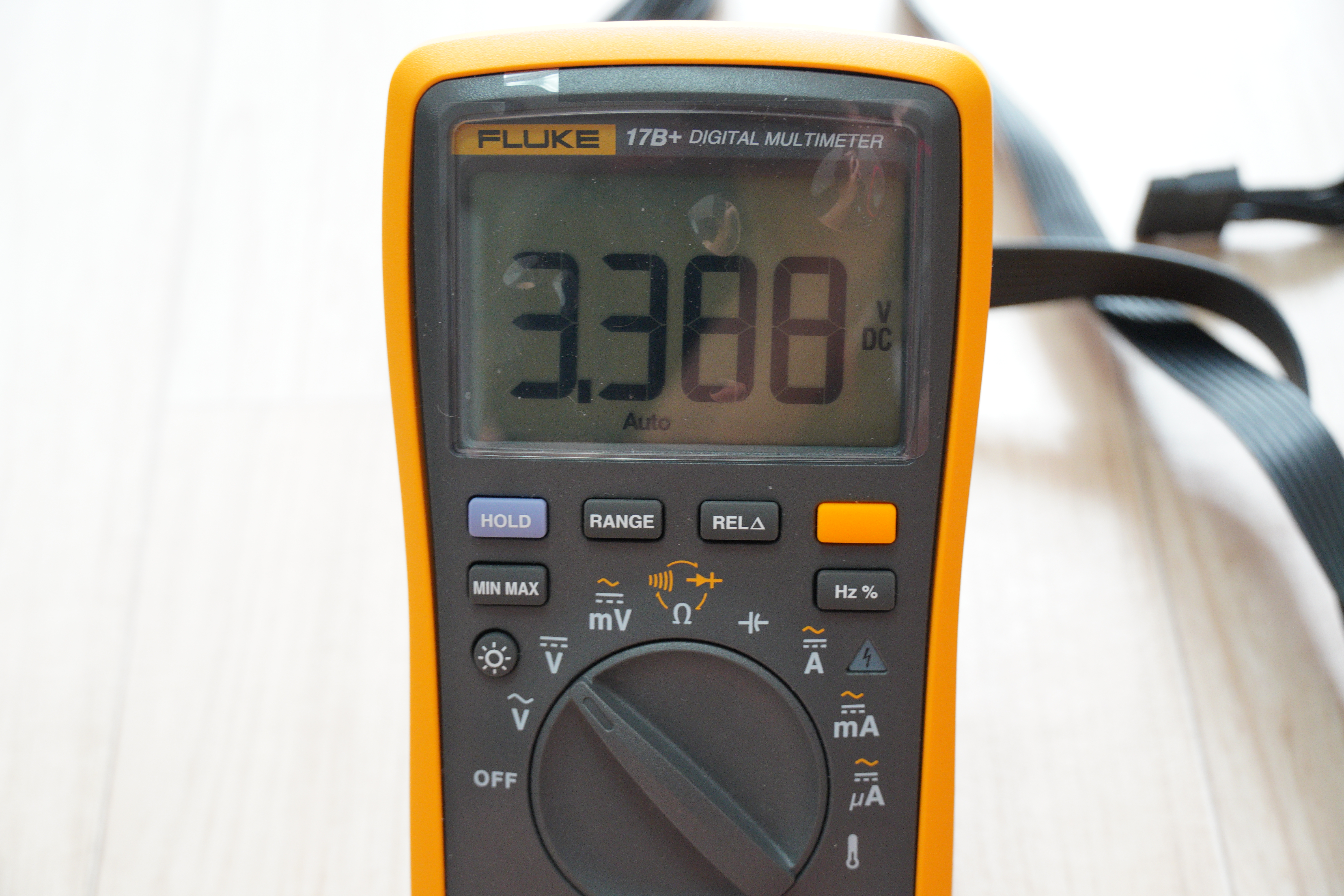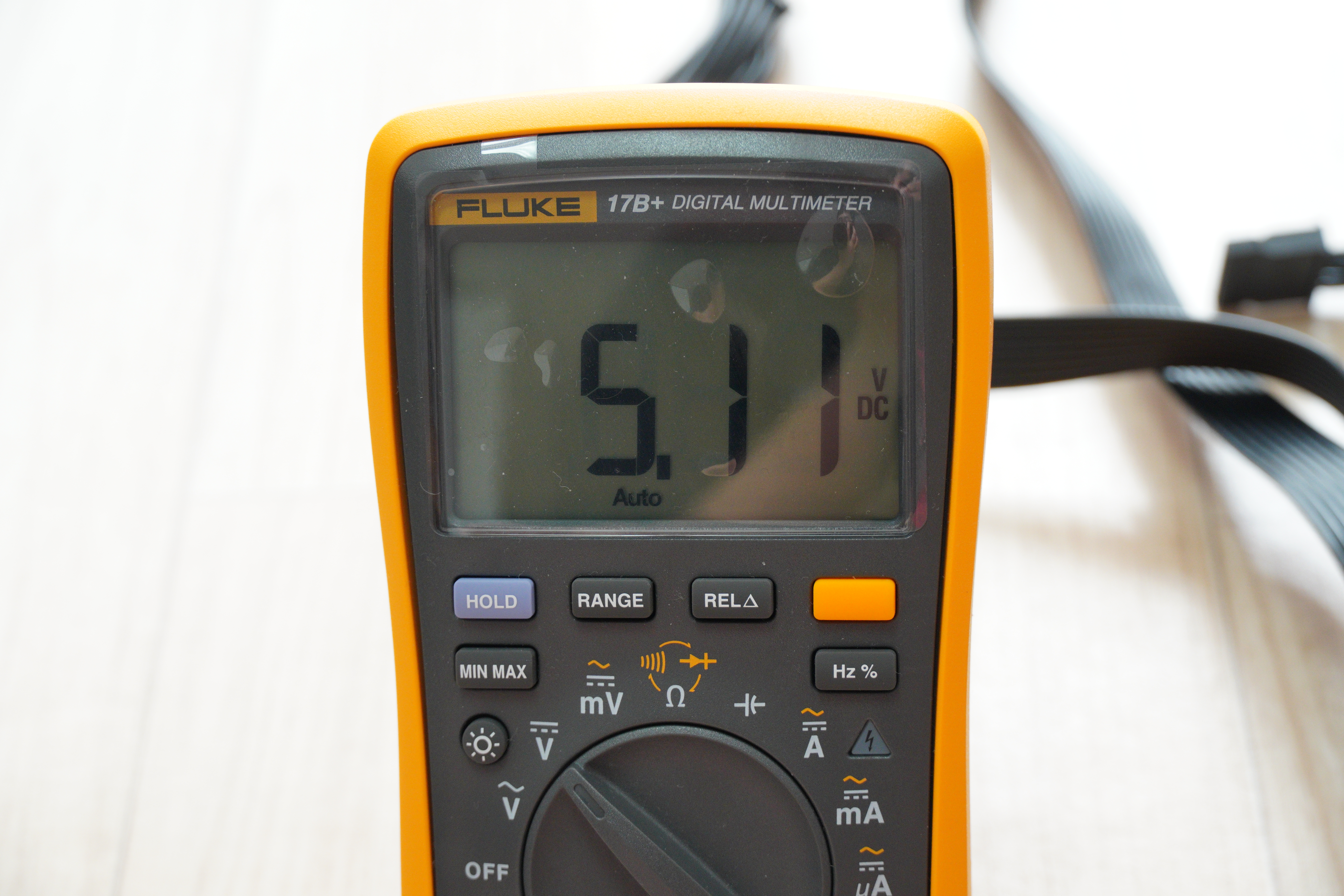 Fluke 17B+ 모델로 측정해보았습니다. 파워서플라이에 부하가 걸리지 않았으며, 이 멀티미터 역시 1% + 3자리의 오차율을 가지고 있기 때문에 완벽한 측정을 할 수는 없지만, 출력의 안정성정도는 확인해볼 수 있을거라 생각하여 측정해보았습니다.
