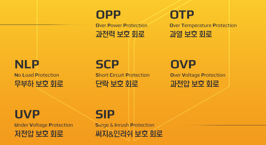 보호회로는 다음과 같은 7종의 보호회로가 탑재되어 있습니다.