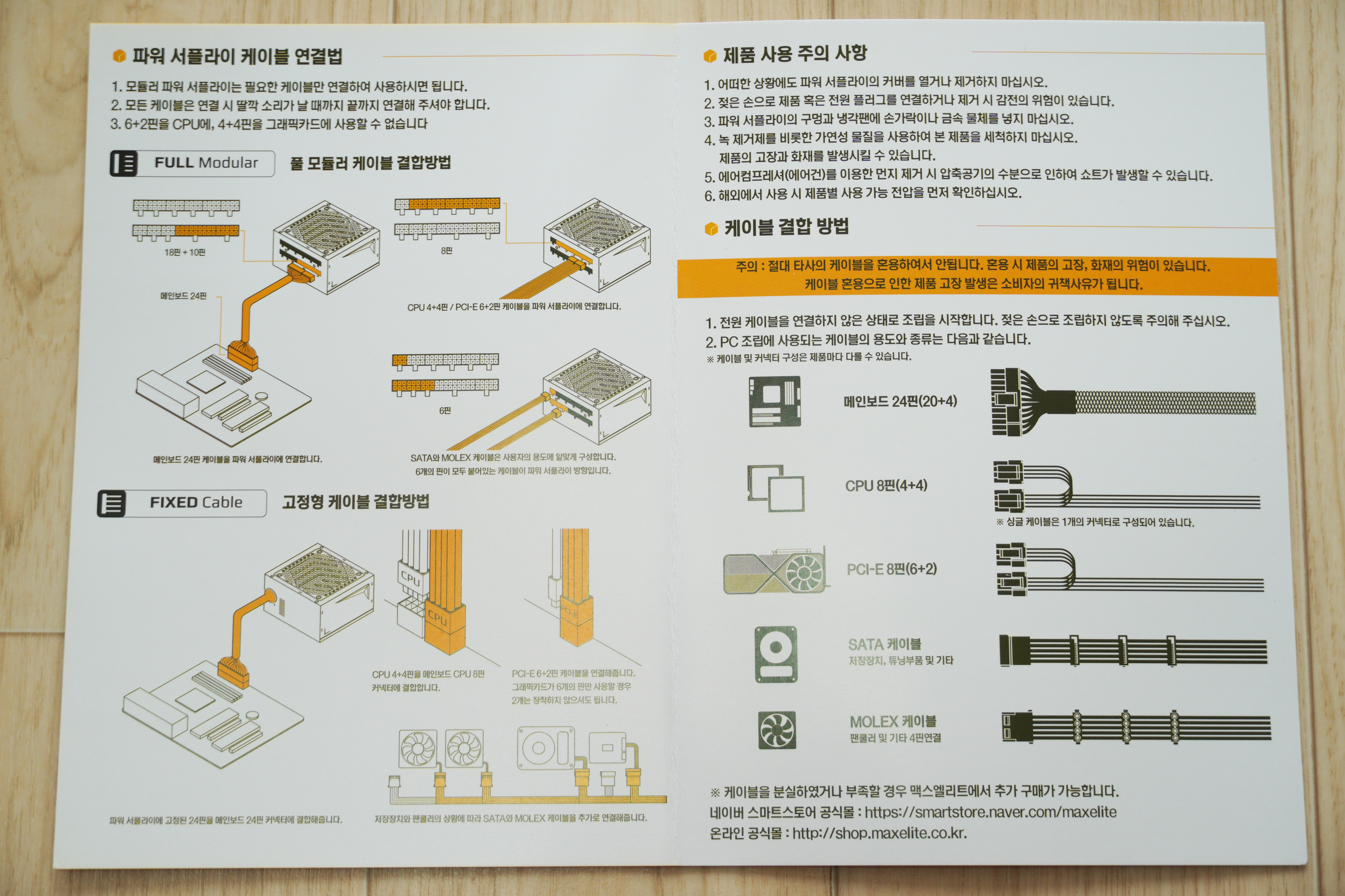 한가지 흥미로운 점은 아직 MAXWELL 브랜드에 풀 모듈러 파워가 없는데, 가이드에 있는걸로 보아 추후에 출시될 가능성이 보입니다.