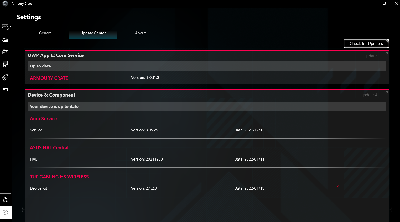 설치후 디바이스 탭에 가보면 TUF H3 Wireless가 인식되어있는 모습을 볼 수 있었습니다.