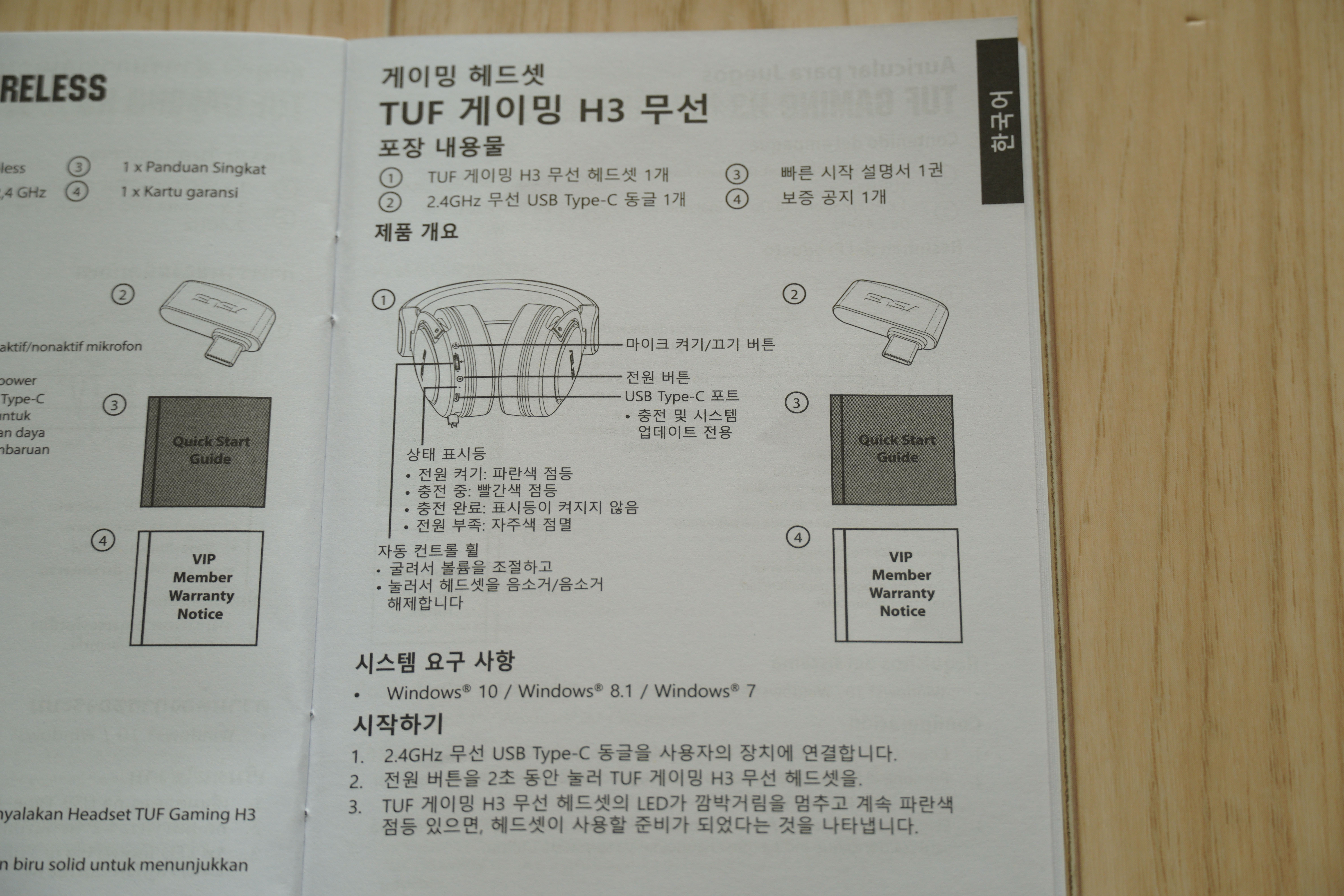 설명서는 다국어 설명서이며, 한국어 부분은 다음과 같습니다. 번역중에 문제가 있었는지 시작하기 2번 문구가 조금 이상하네요.