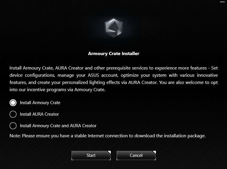 최초로 동글을 연결하면 ASUS Armoury Crate를 설치하라고 문구가 나오는데 실수로 종료해버려서...