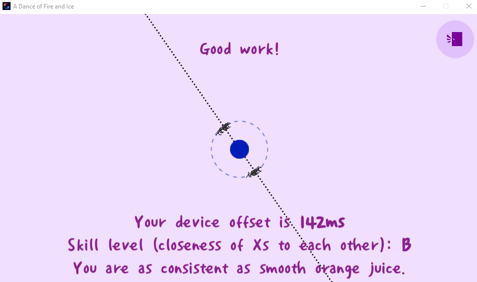 먼저 정확한 레이턴시 측정을 위해 A Dance of Fire and Ice 라는 리듬게임의 오프셋 측정기를 이용하였습니다.