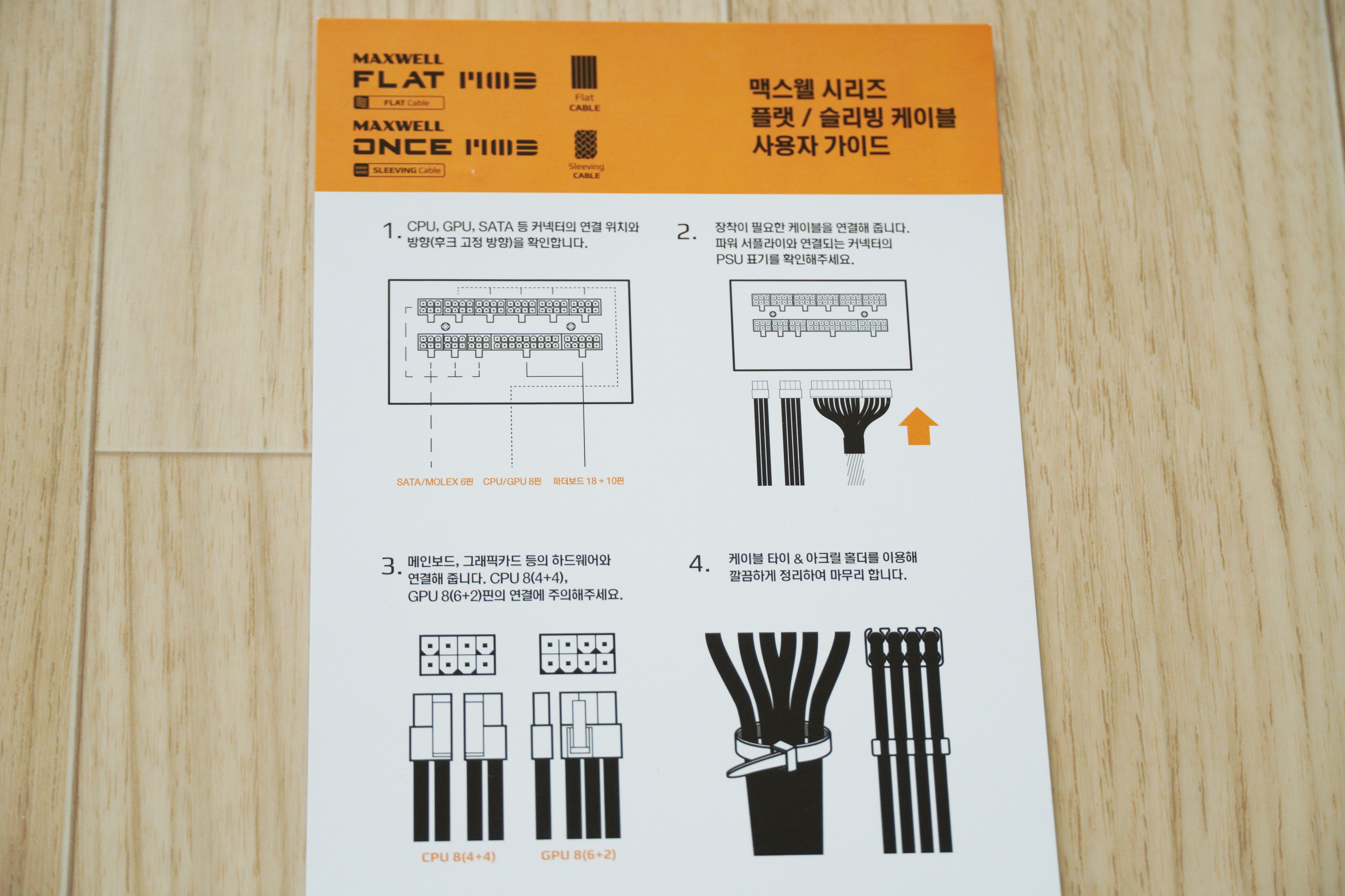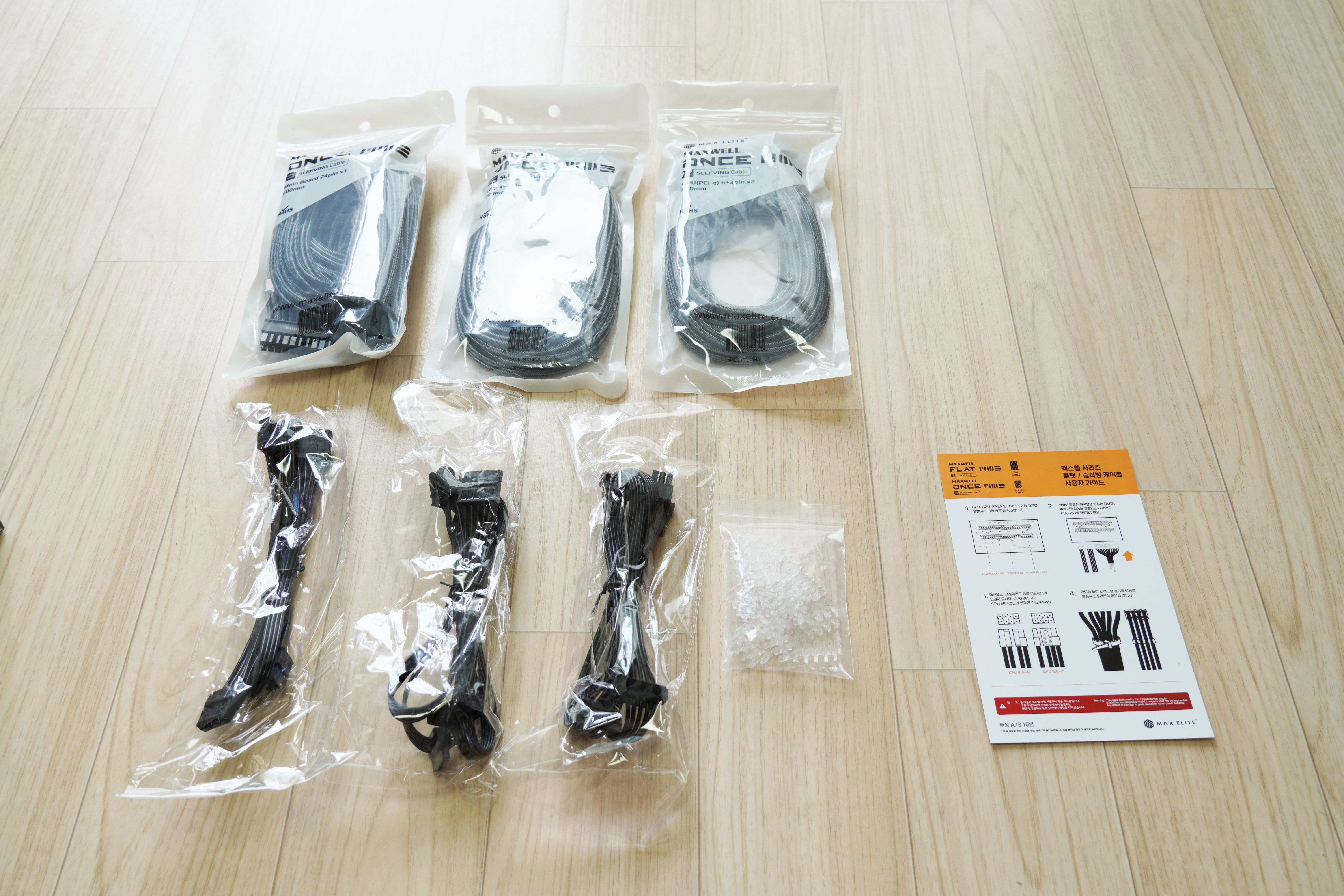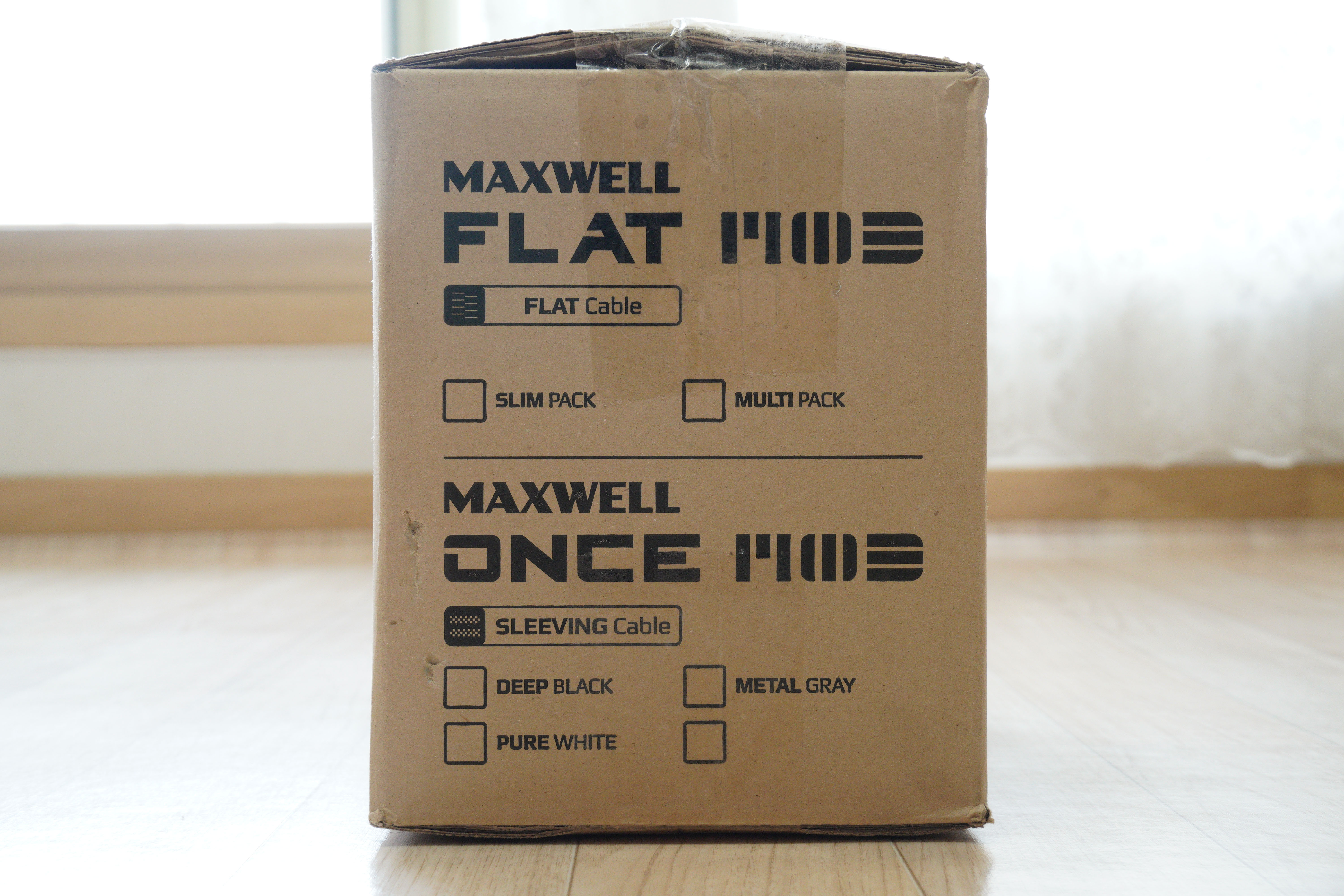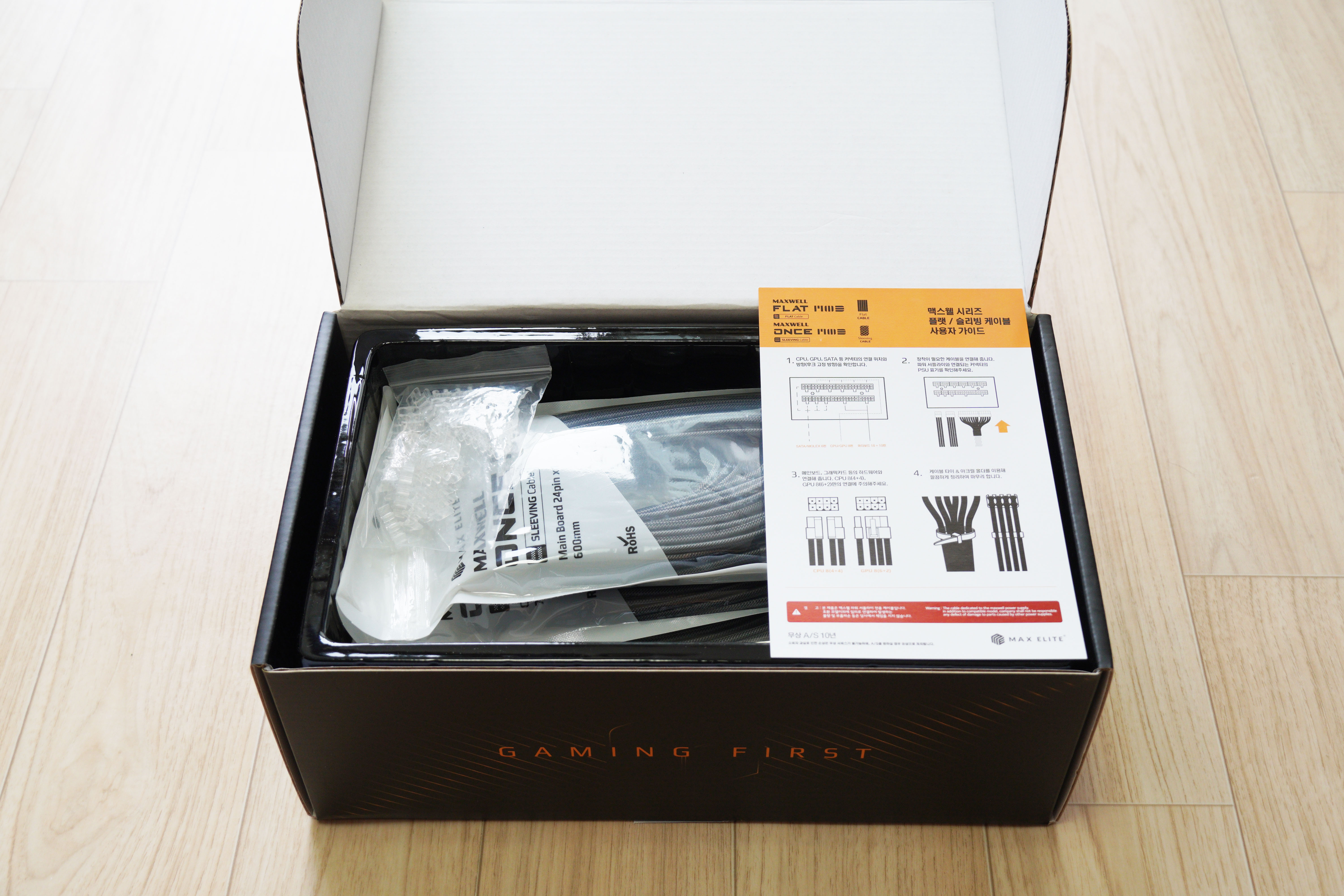 이번에는 파워서플라이 케이블 박스를 살펴보도록 하겠습니다. 모델명은 MAXWELL ONCE MOD 슬리빙 케이블입니다.