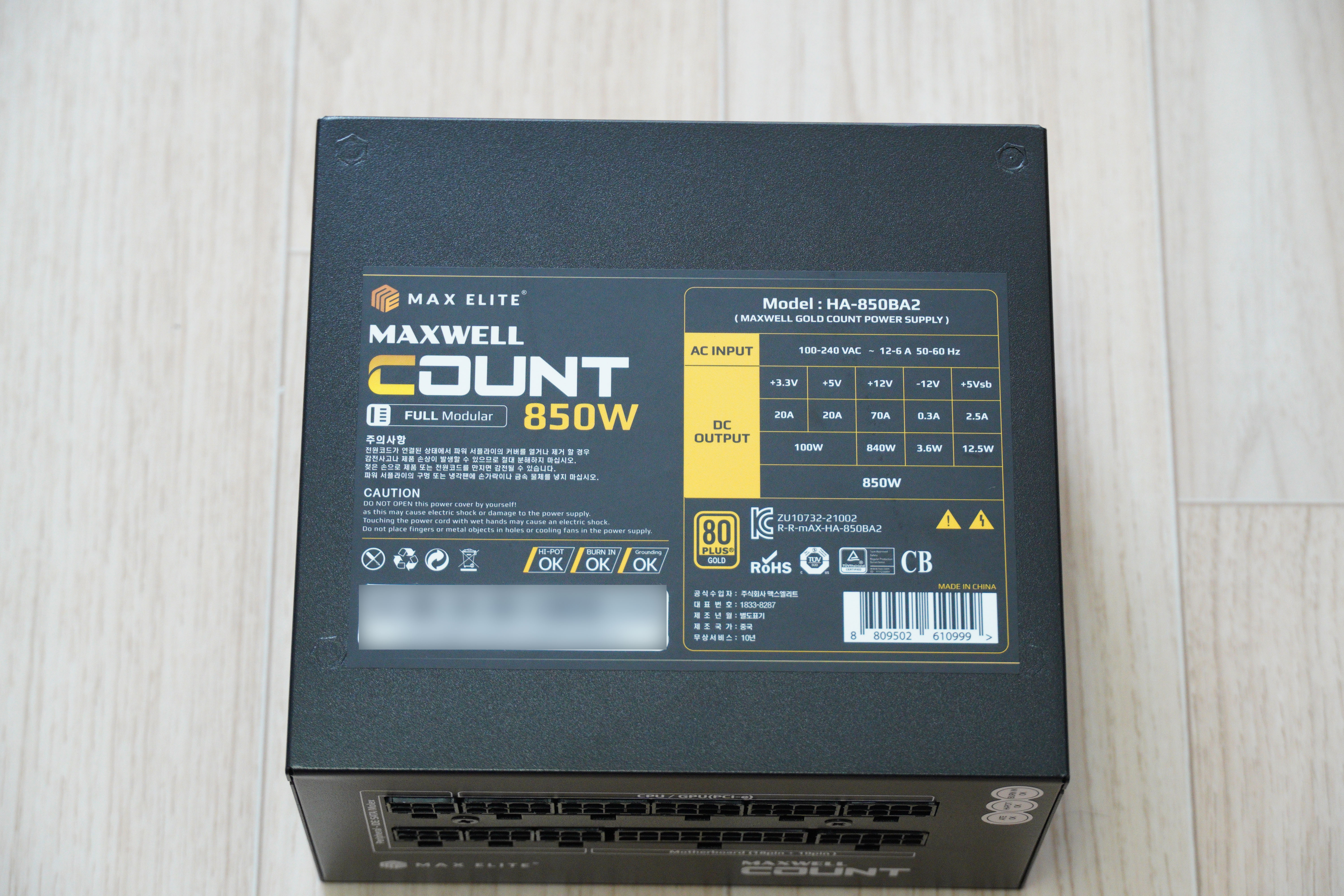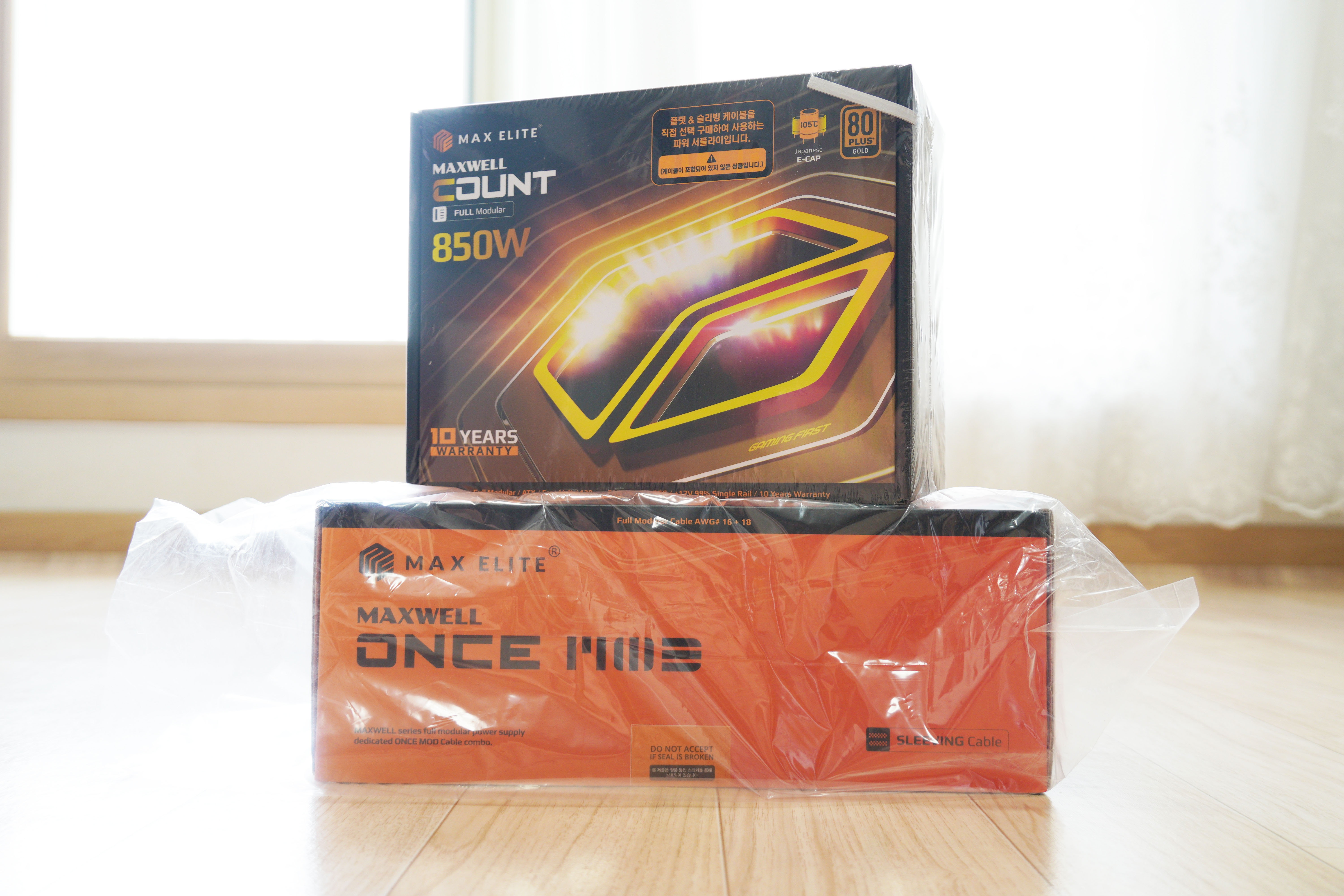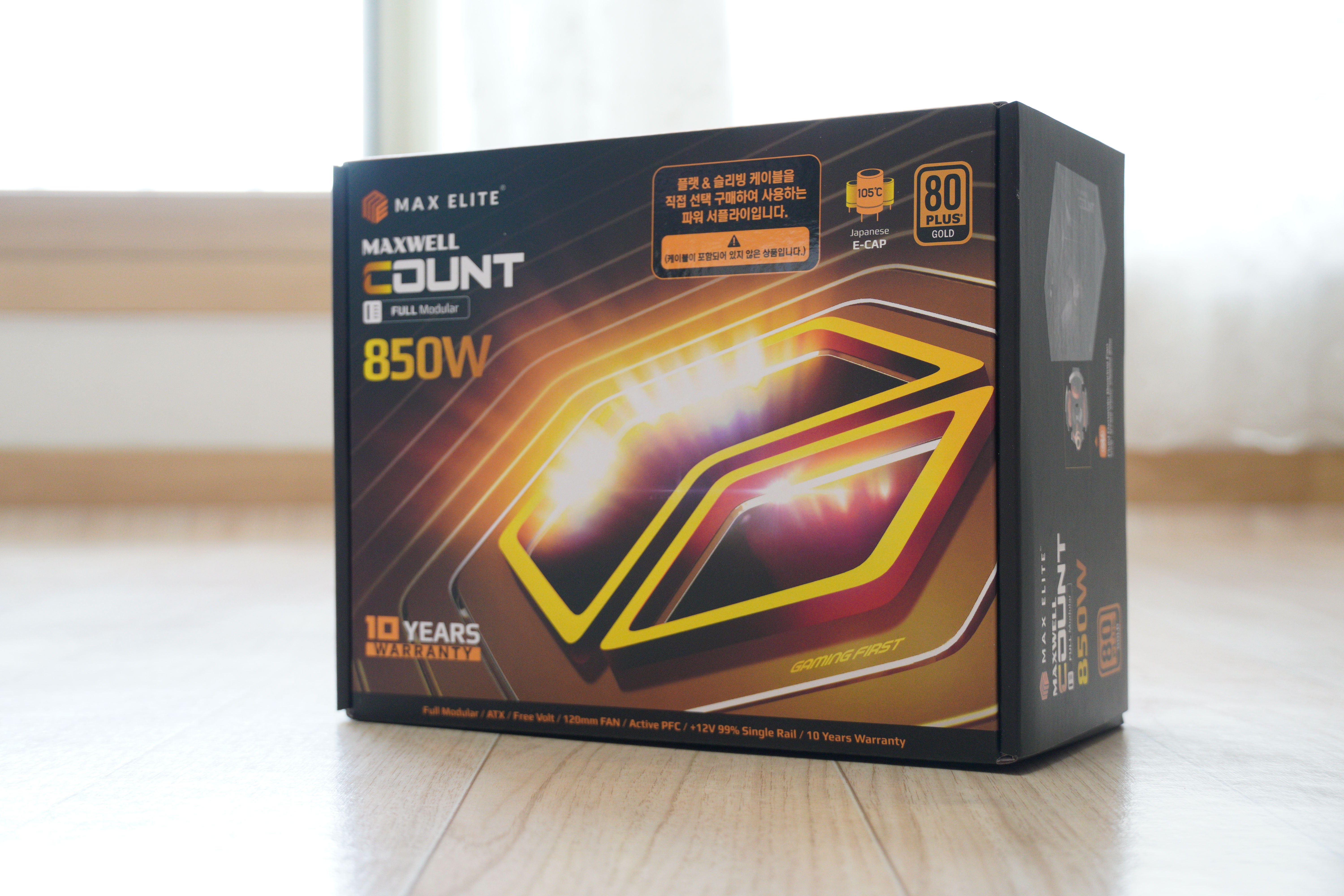 안녕하세요 ITKBJ 김병장입니다. 오늘 리뷰할 제품은, 맥스엘리트에서 출시한 풀 모듈러 파워, 맥스엘리트 MAXWELL GOUNT GOLD 850W 풀 모듈러 파워서플라이입니다.