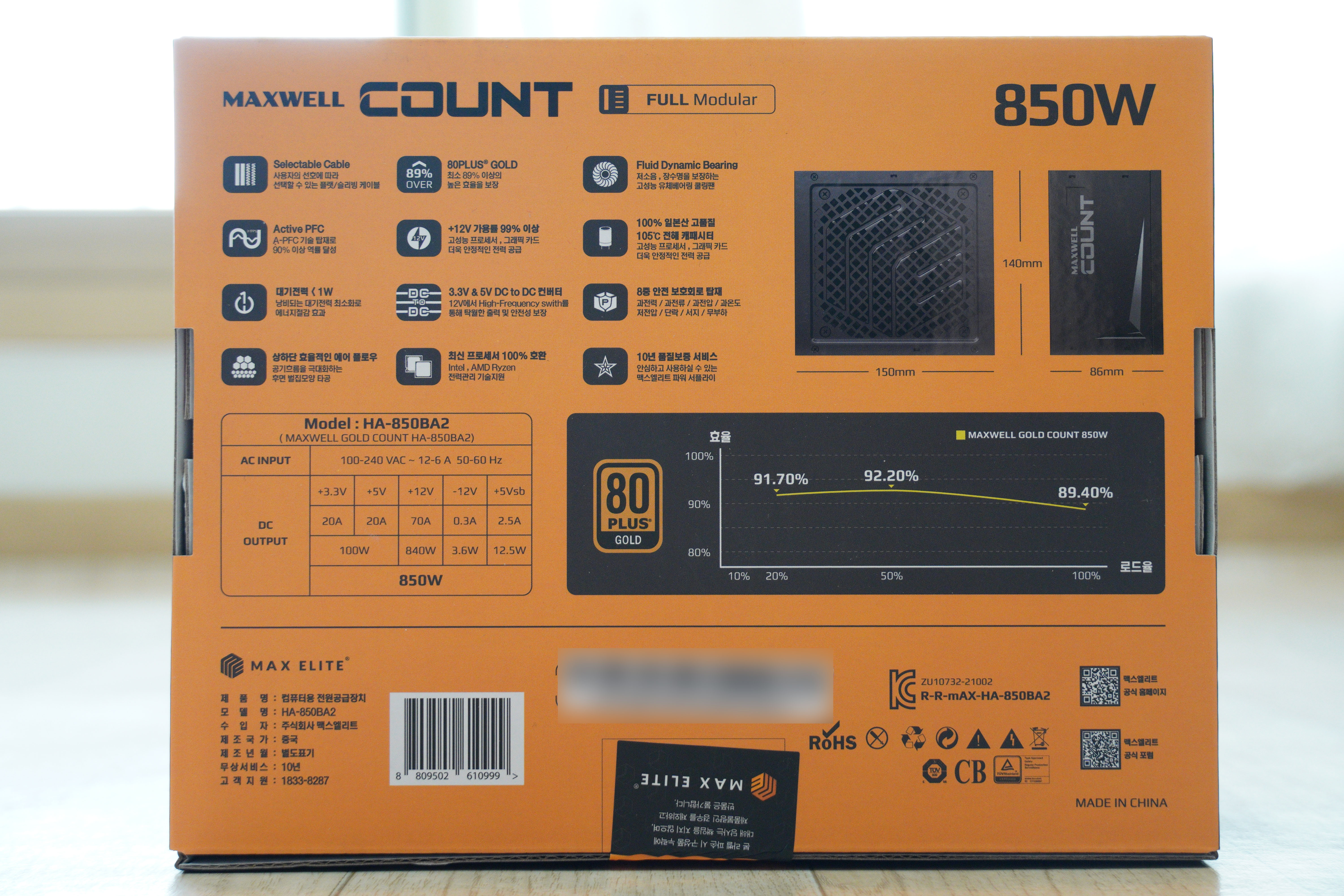 맥스엘리트 MAXWELL COUNT 850W 80PLUS GOLD 풀모듈러