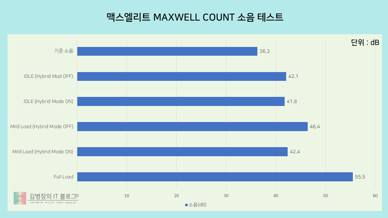 다음은 벤치마크입니다. 저는 장비의 한계가 있기 때문에, 소음 테스트만 진행하였습니다.