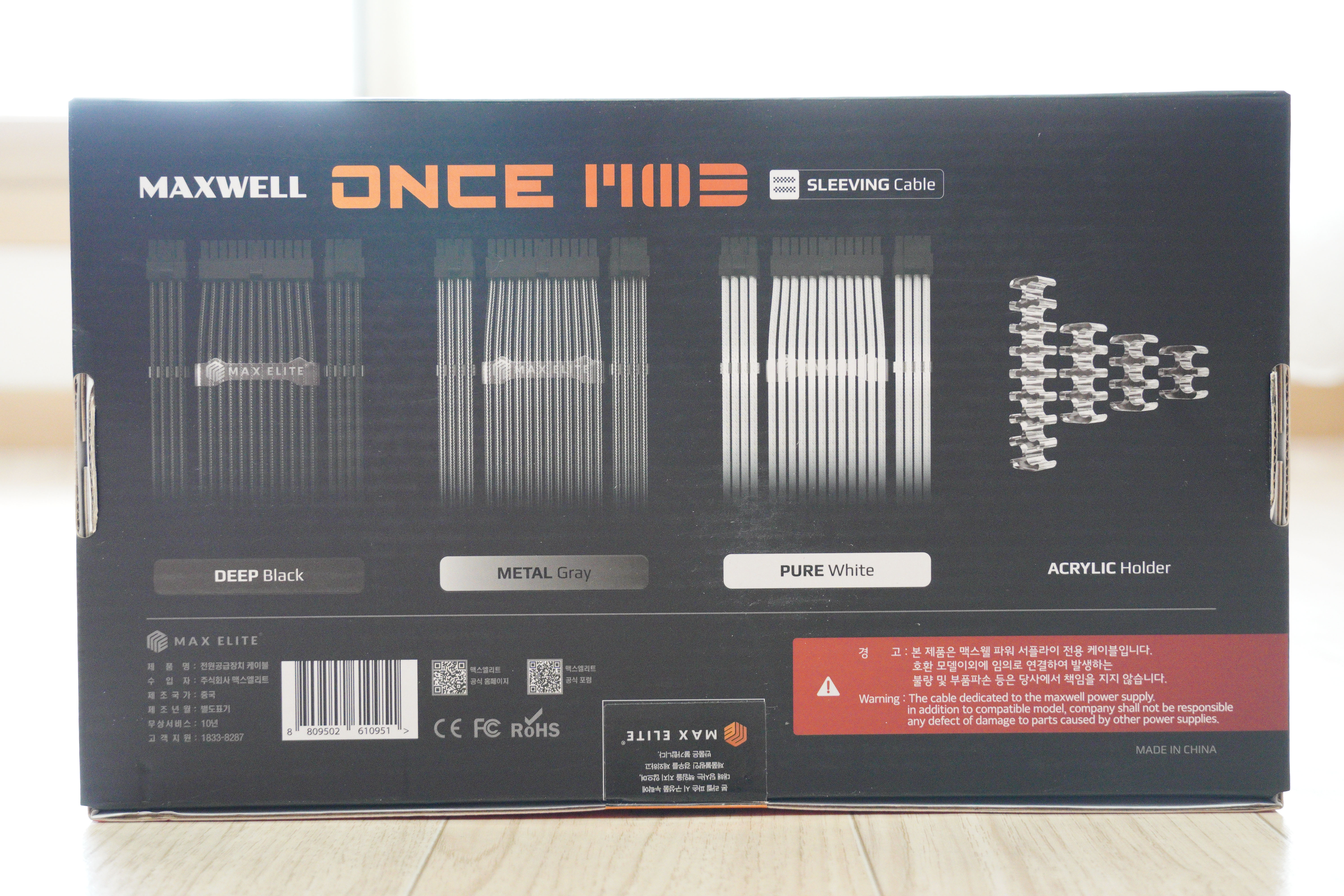 MAXWELL ONCE MOD 케이블의 경우, 향후 맥스엘리트에서 출시하는 모듈러 파워들과 호환된다고 하니, 업그레이드에도 용이합니다.