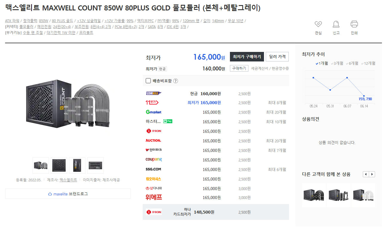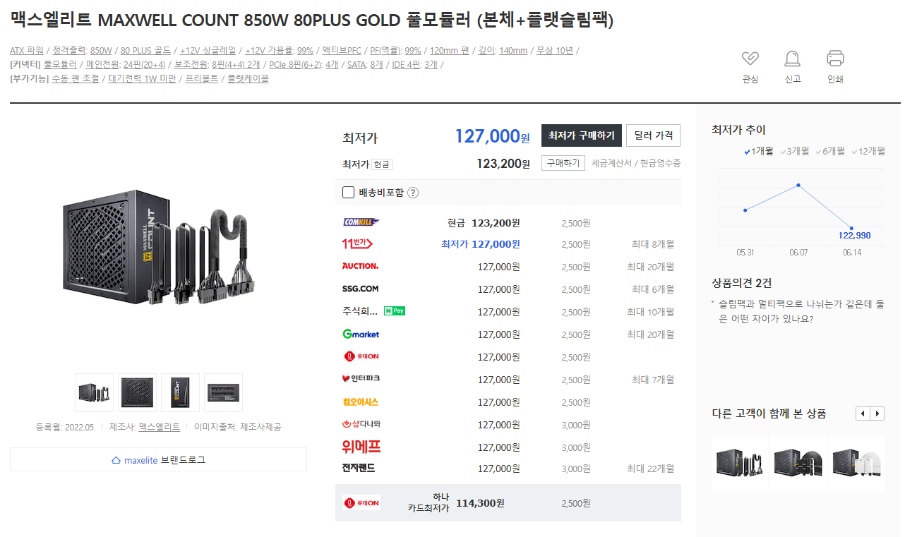 맥스엘리트 MAXWELL COUNT 850W 80PLUS GOLD 풀모듈러파워도 이젠 케이블을 선택해서 살 …