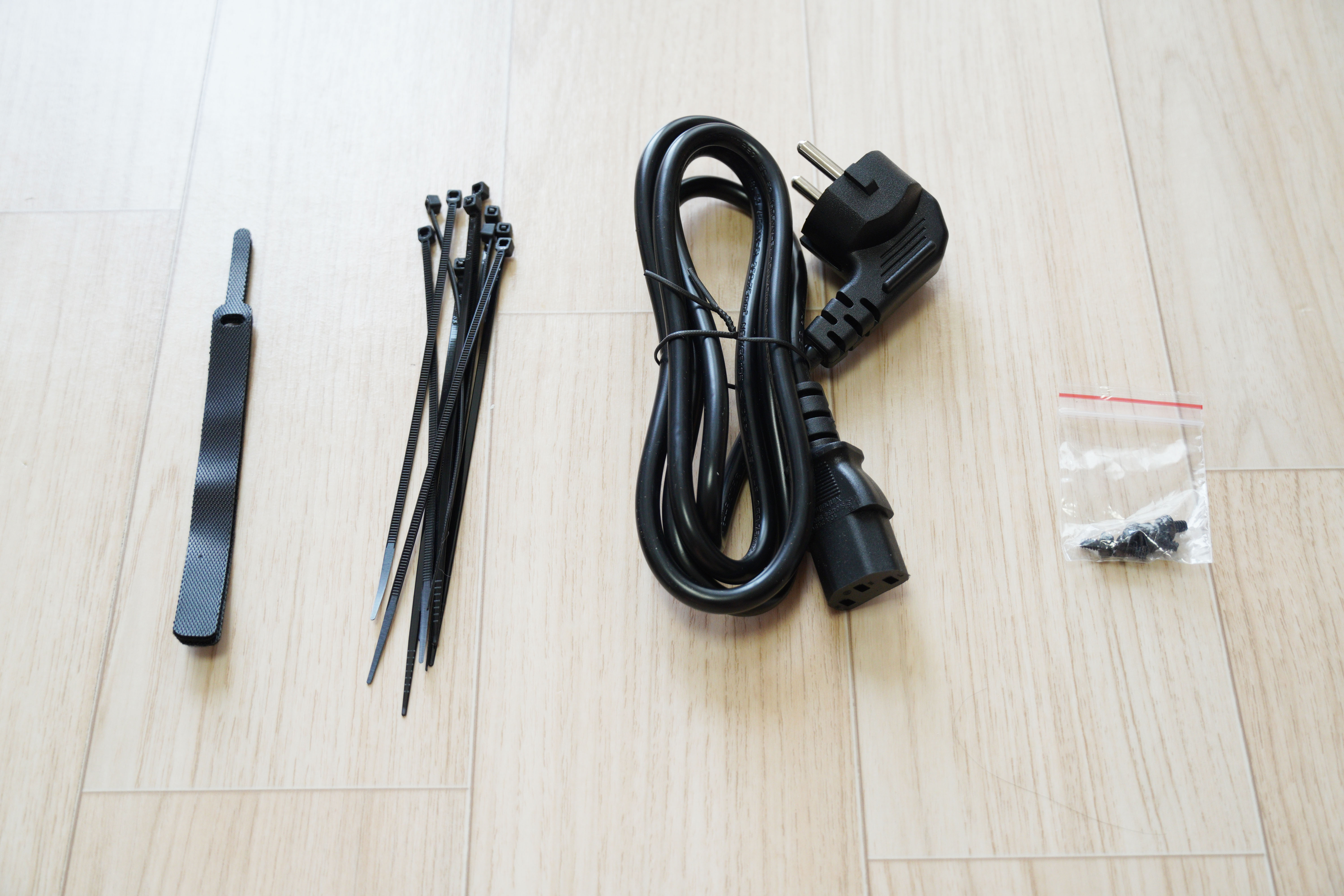 악세사리 박스에는 파워서플라이 케이블과 나사 뿐만 아니라, 정리를 위한 벨크로 타이 3개와 일반 케이블타이가 있습니다.