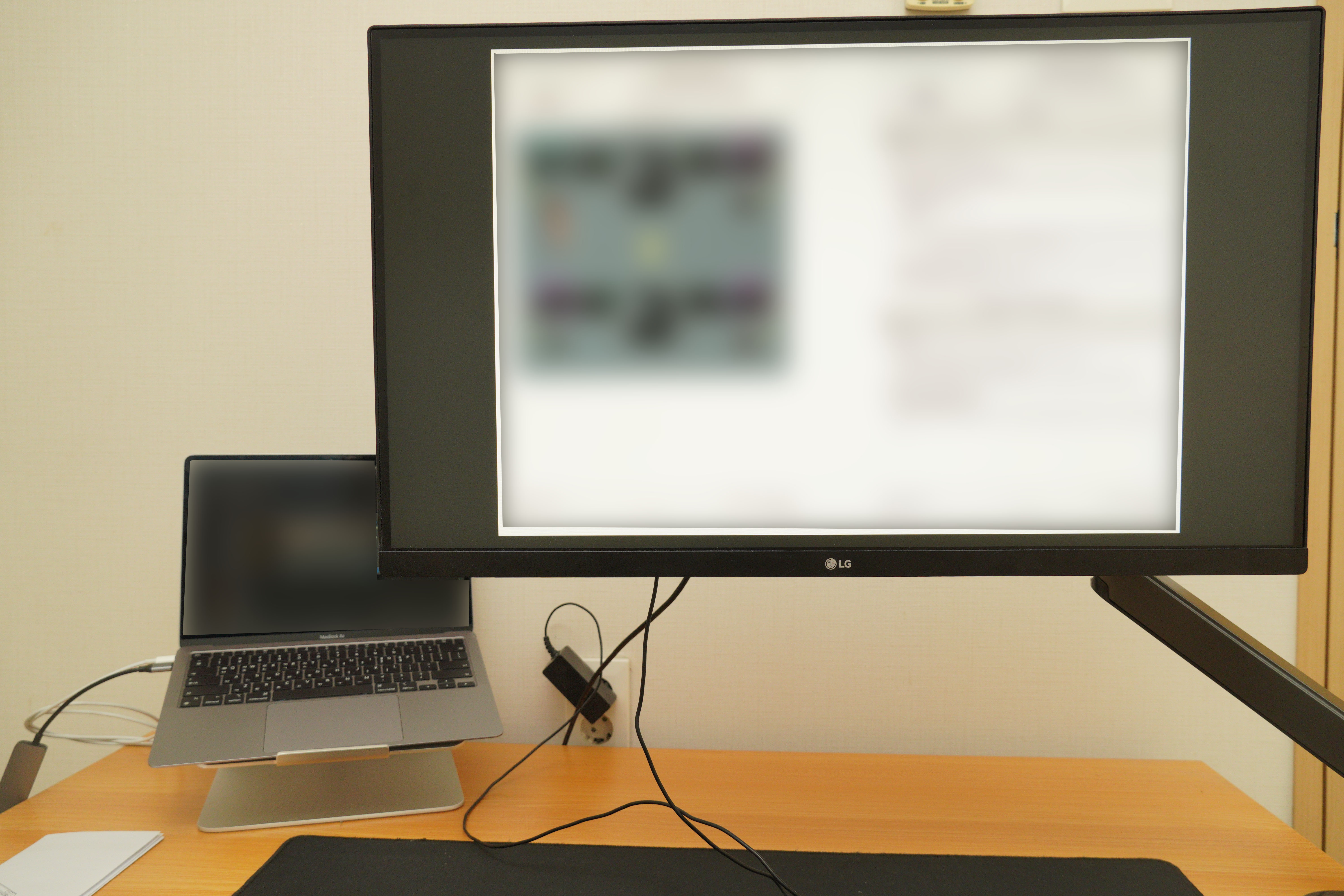 모니터를 합체해본 모습입니다. 27인치 LGQN600 모니터를 장착해보았습니다.