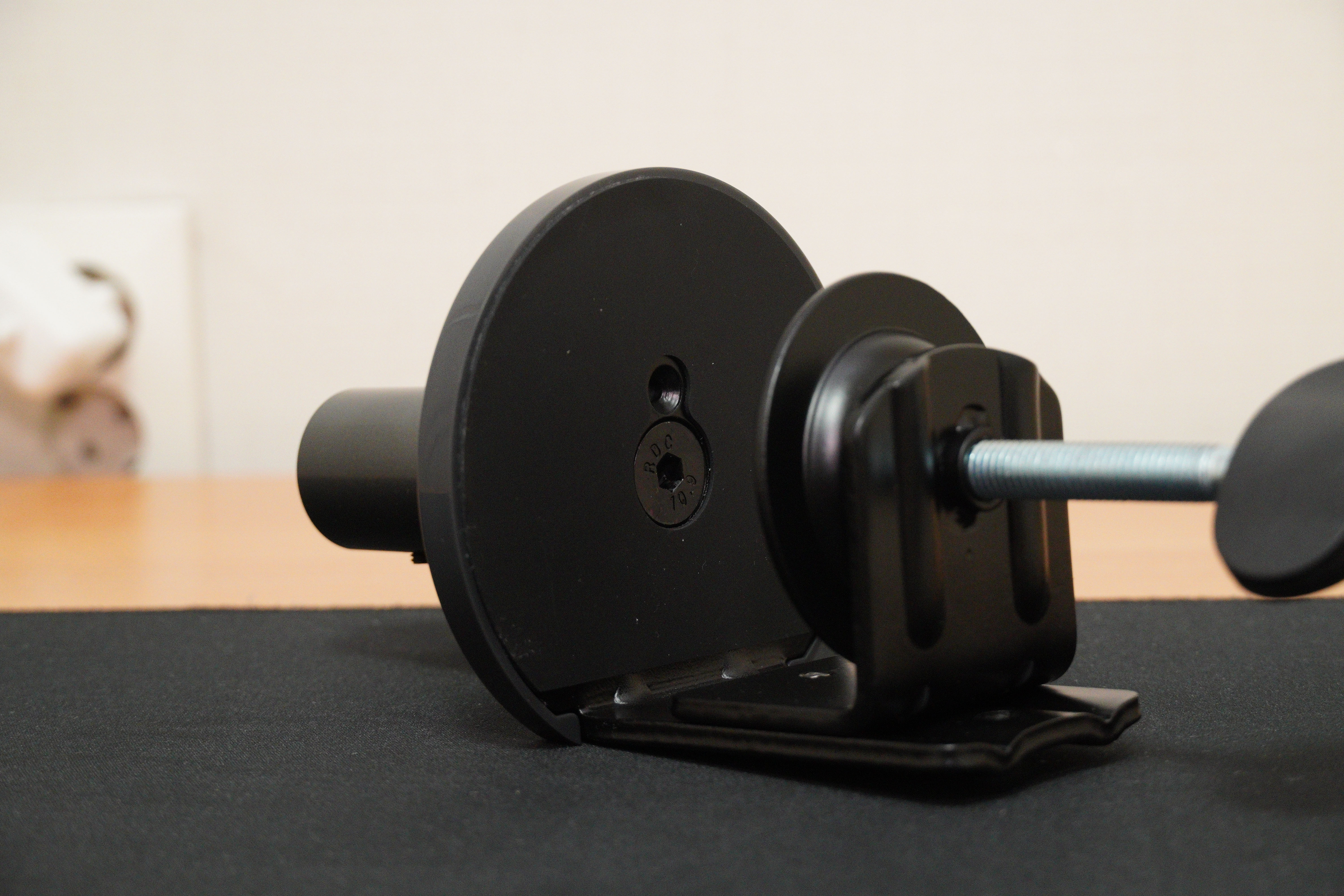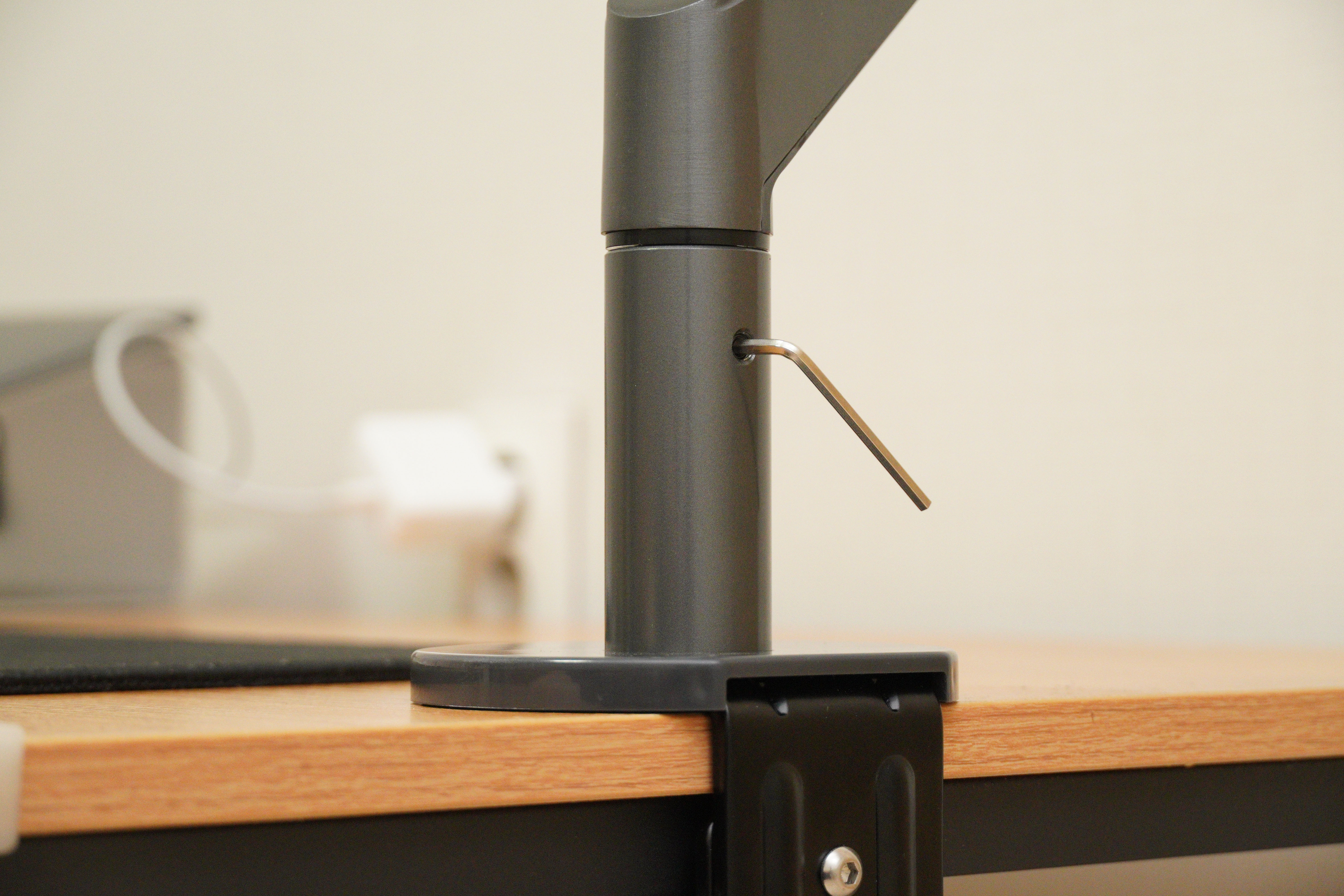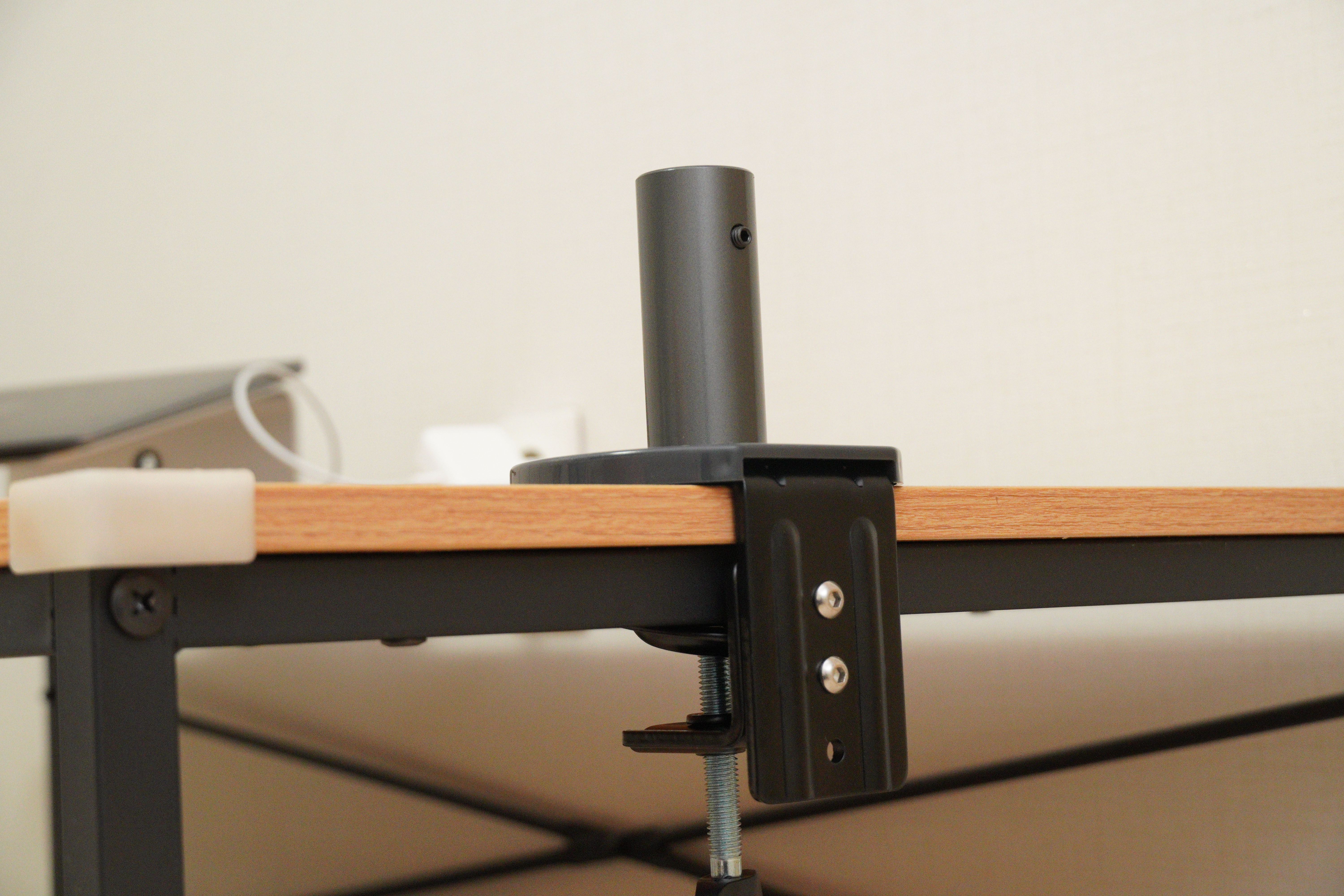 클램프는 손으로 조이는 방식으로 되어있습니다. 클램프는 스펙상 60mm까지 열립니다만, 안전한 고정을 위해 충분한 여유가 있는 책상에 장착하는게 좋아보입니다.