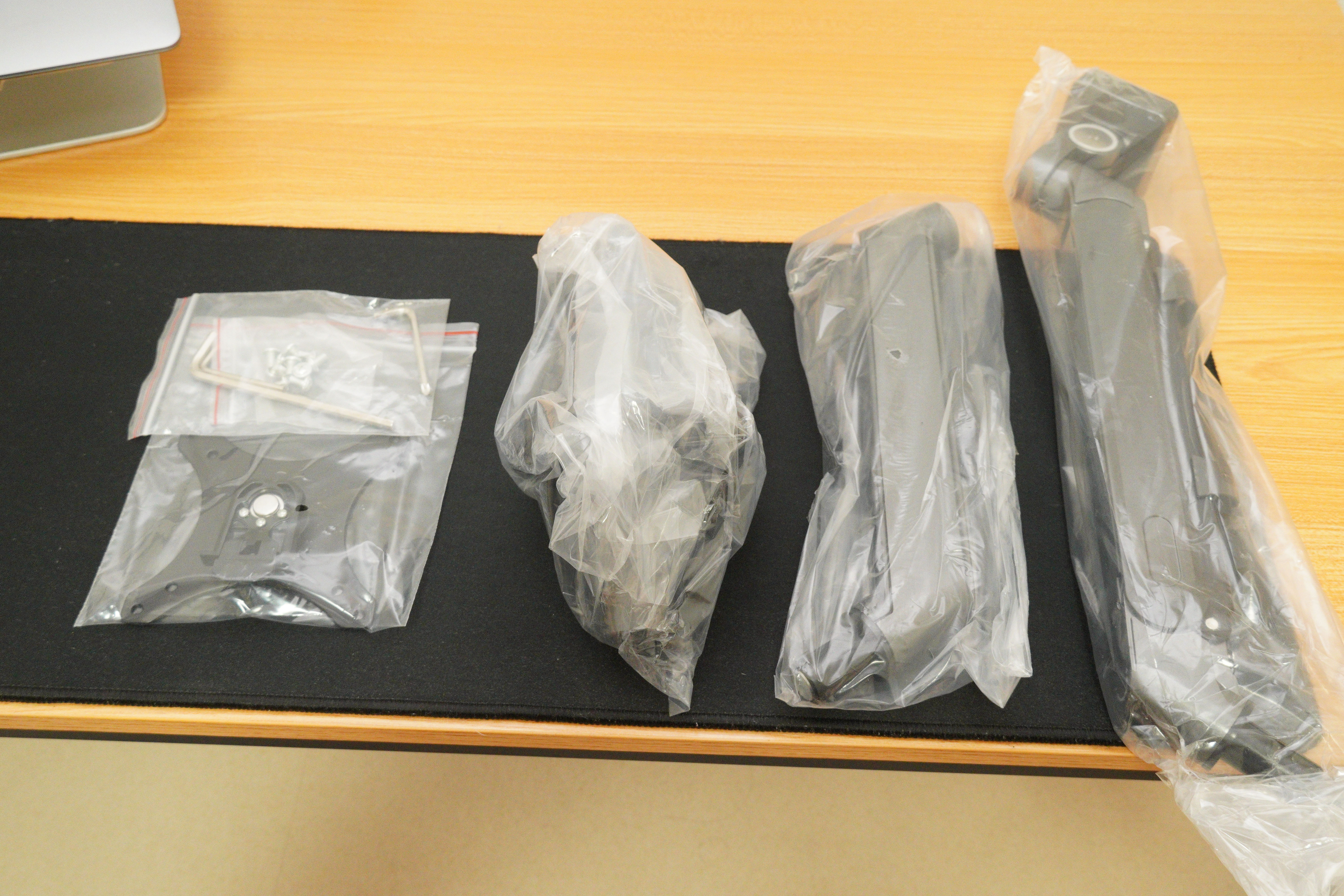 구성품은 왼쪽부터 베사홀 마운트, 나사와 육각렌치, 그리고 클램프와 암 2파츠가 들어있습니다.