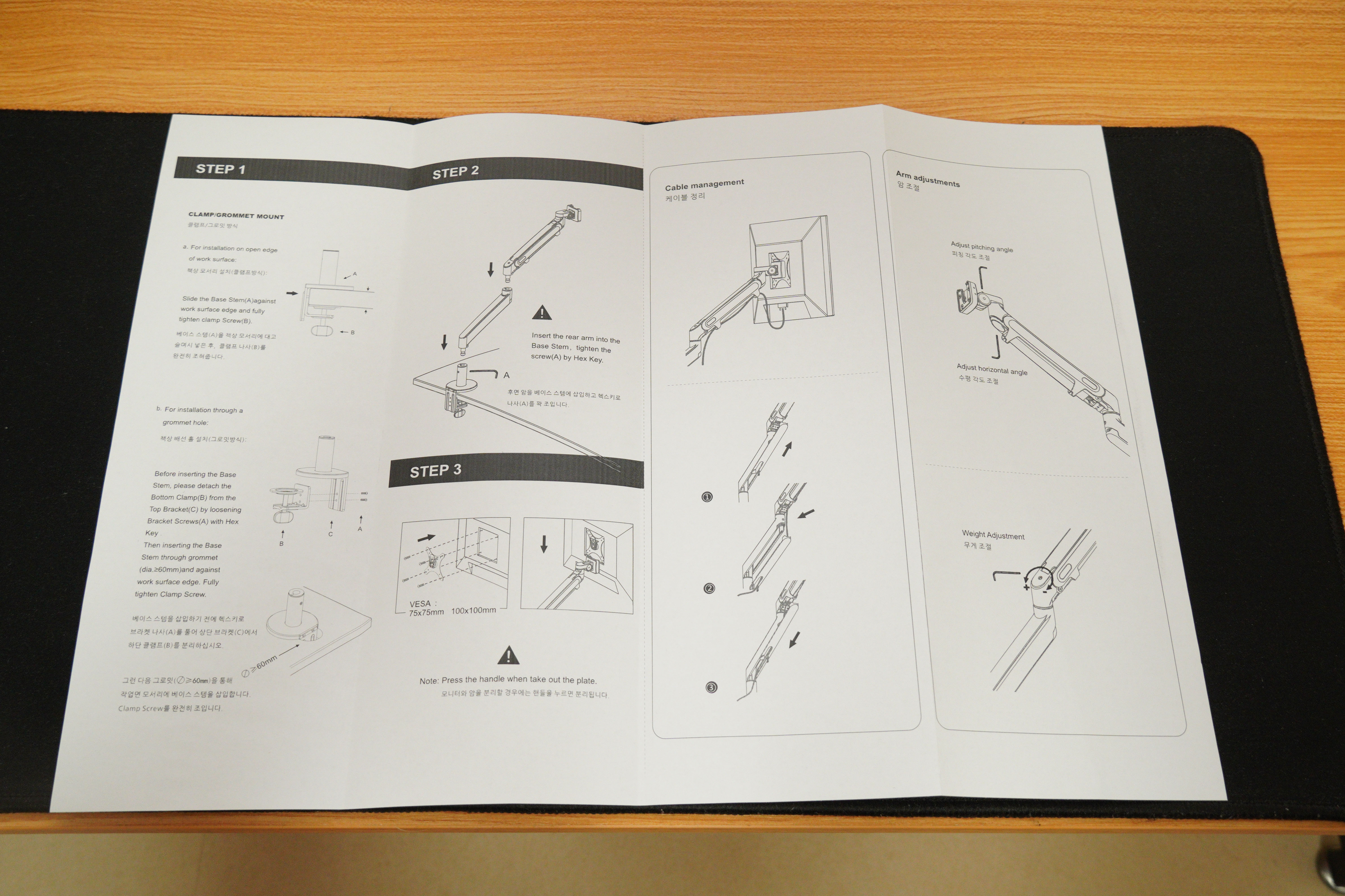 장착을 할 때, 직관적이고 심플한 설명으로 장착이 매우 쉬우며, 클램프에 고무가 덧대어져 있어 장착 시 책상의 손상을 최소화 할 수 있다는 장점도 있습니다.