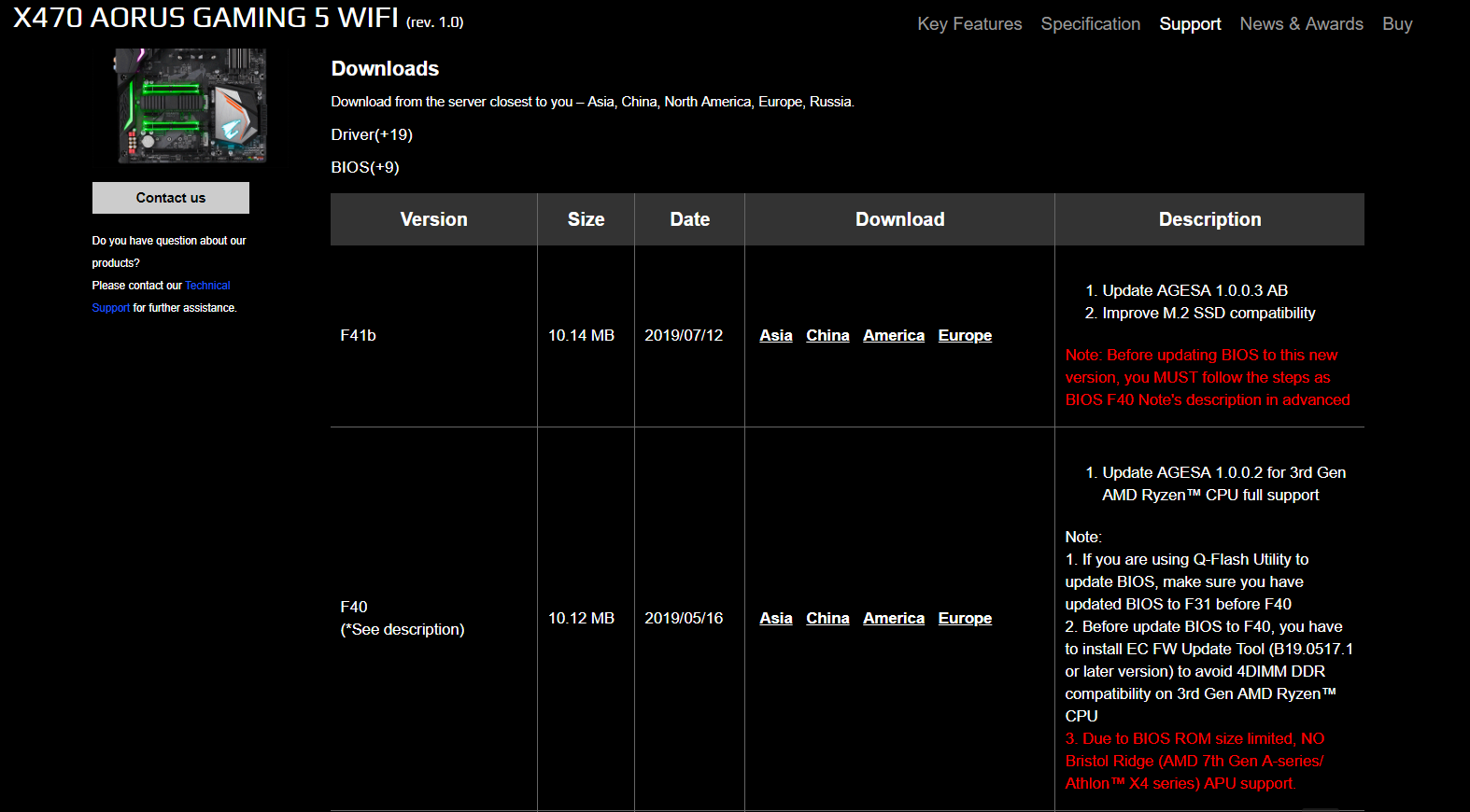 저같은 경우 기가바이트사의 X470 Gaming 5 제품을 사용중인데, 보시는바와 같이 바이오스 롬사이즈의 제약때문에 브리스톨릿지는 지원하지 않는다고 나와있습니다.