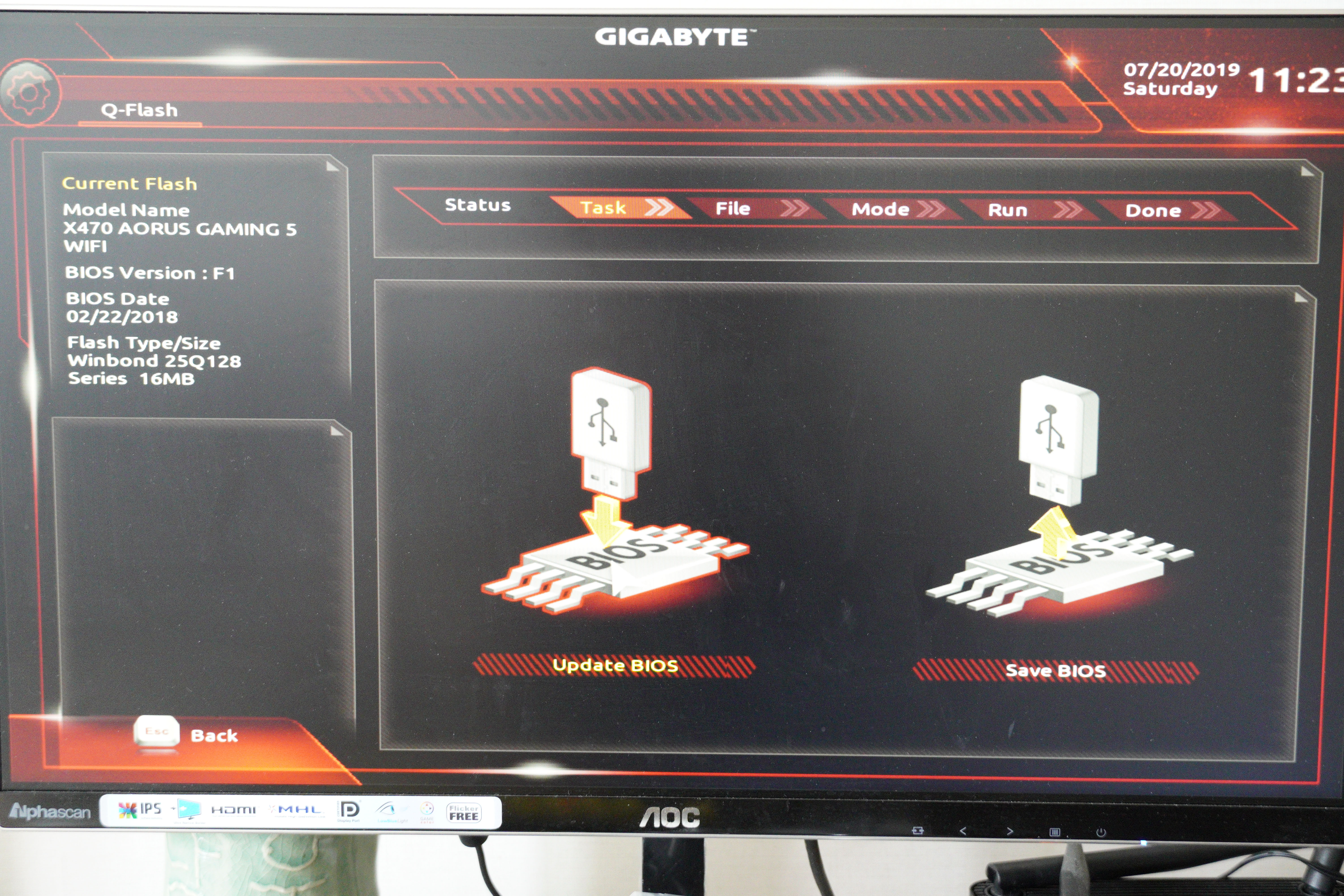 보시면 제 바이오스 버전이 F1로 나타나 있습니다. 펌웨어 업데이트를 하거나, 듀얼바이오스 버그와 같은 그런 좋지 않은거에 걸리시면 저렇게 되는데, 저런식으로 F1 초기 바이오스가 되어있다면 메인보드 홈페이지에서 하위버전의 이미지를 받아 순차적으로 업데이트 해야합니다.