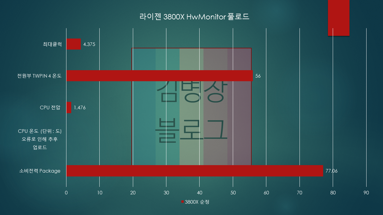 풀로드는 LinX를 돌리고 있을때, CPU 사용률 100% 상태일때의 값을 기준으로 하였습니다.