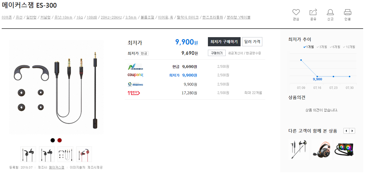 리뷰를 쓰는 2019년 8월 4일 기준, 최저가 9,900원입니다... 가격적인 면에서는 뭐라 할말이 없네요.