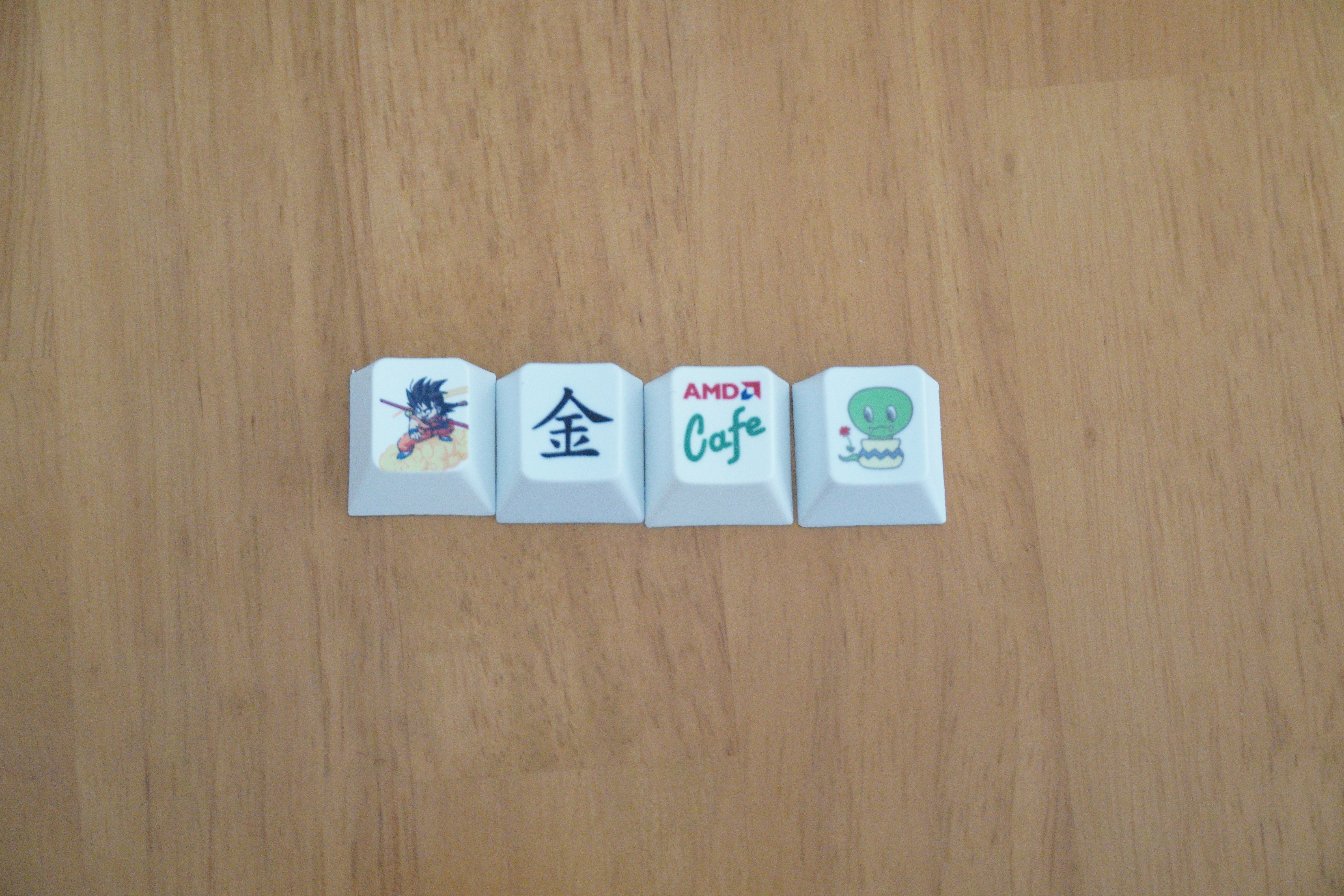 요놈들은 그때 한정으로 있었던 손오공 키캡(극소량만 팬아트? 처럼 만든거라 저작권법에는 저촉되지 않는다는 확인을 받았다네욤. 방문한사람 선착순으로 무료로 줬습니다!)과 제 성을 딴 키캡, 암드카페랑 용띠 키캡입니다