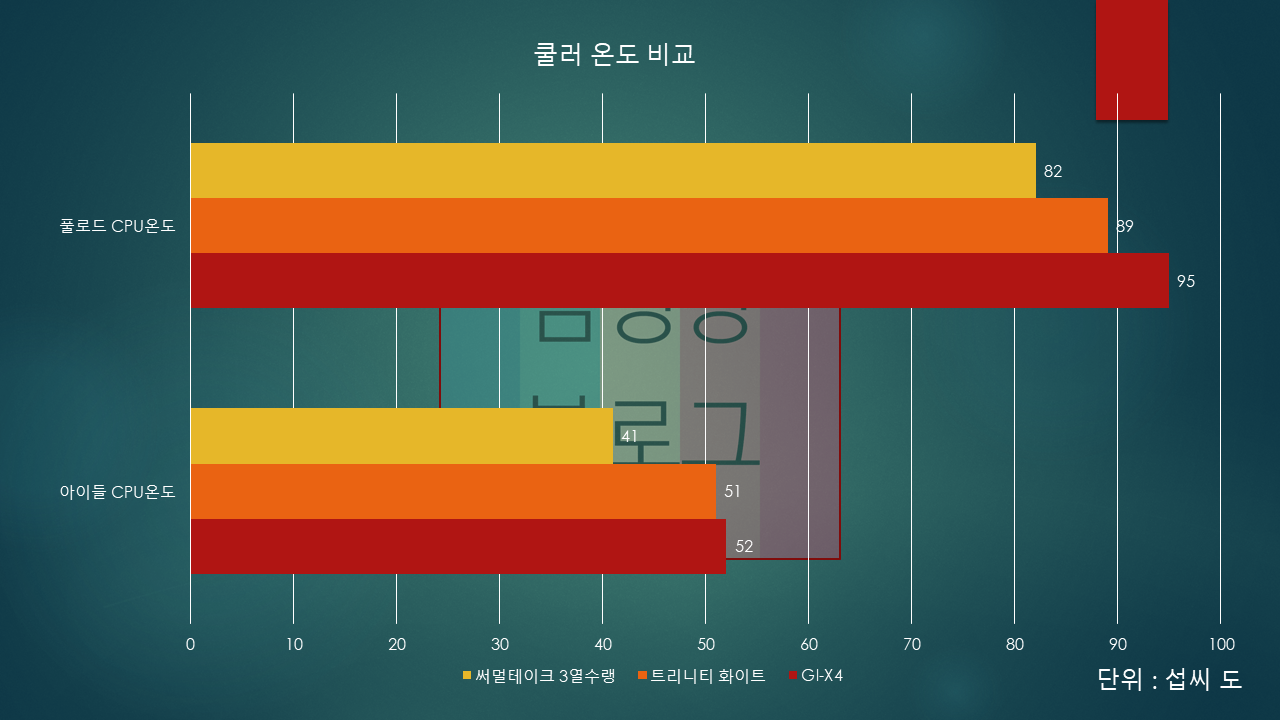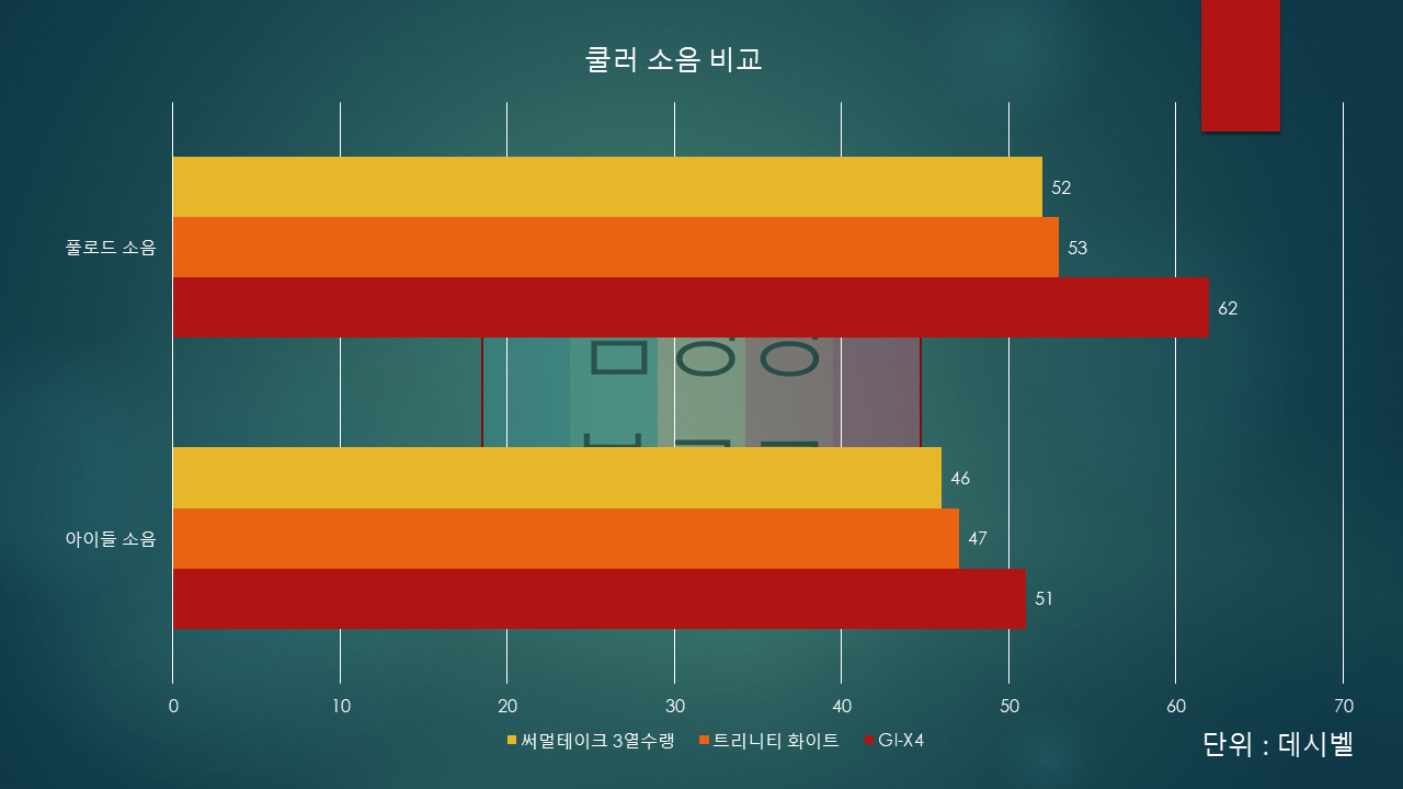 보시면 PCCOOLER 사의 GI-X4가 소음이 약간 더 큰것을 볼 수 있습니다.