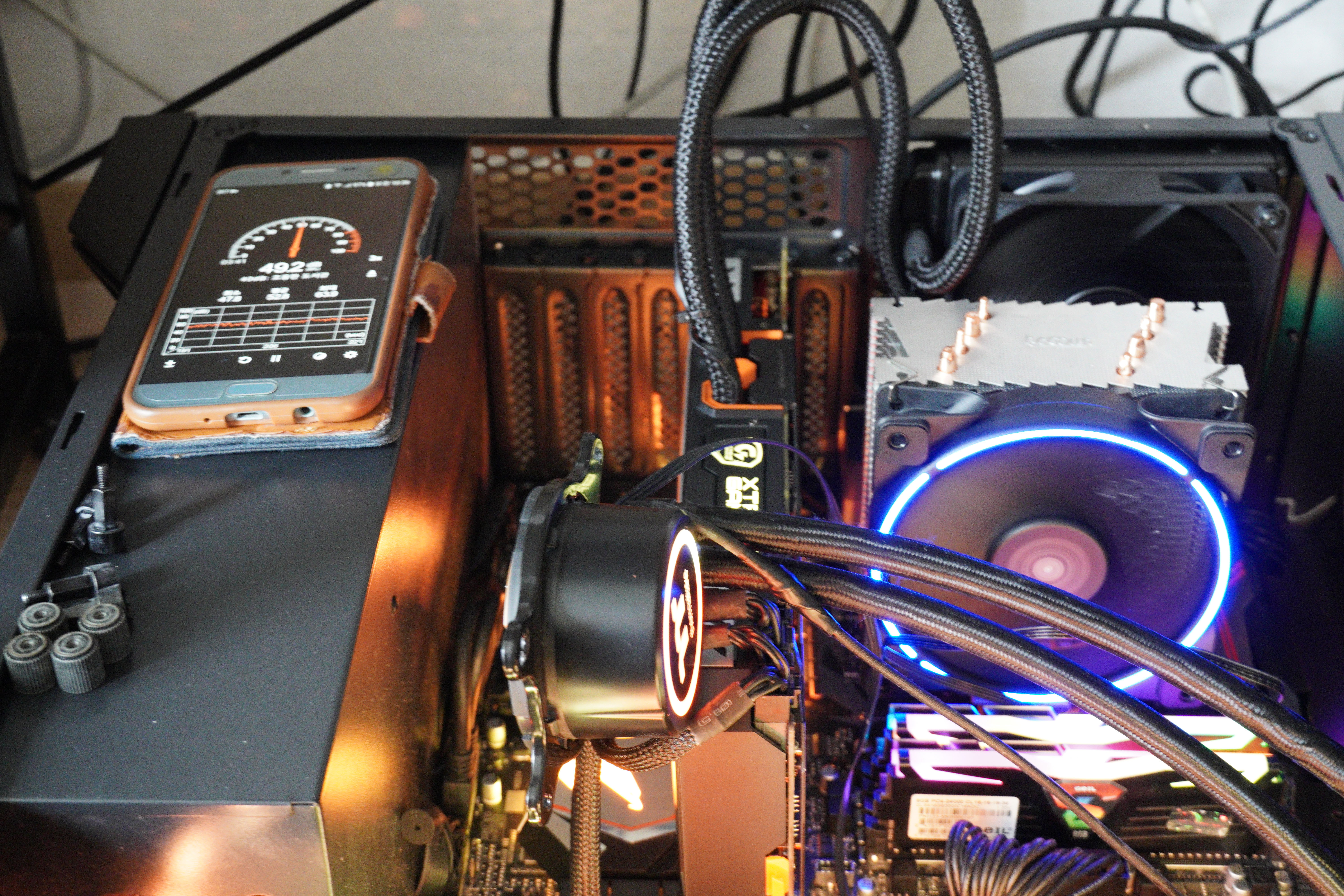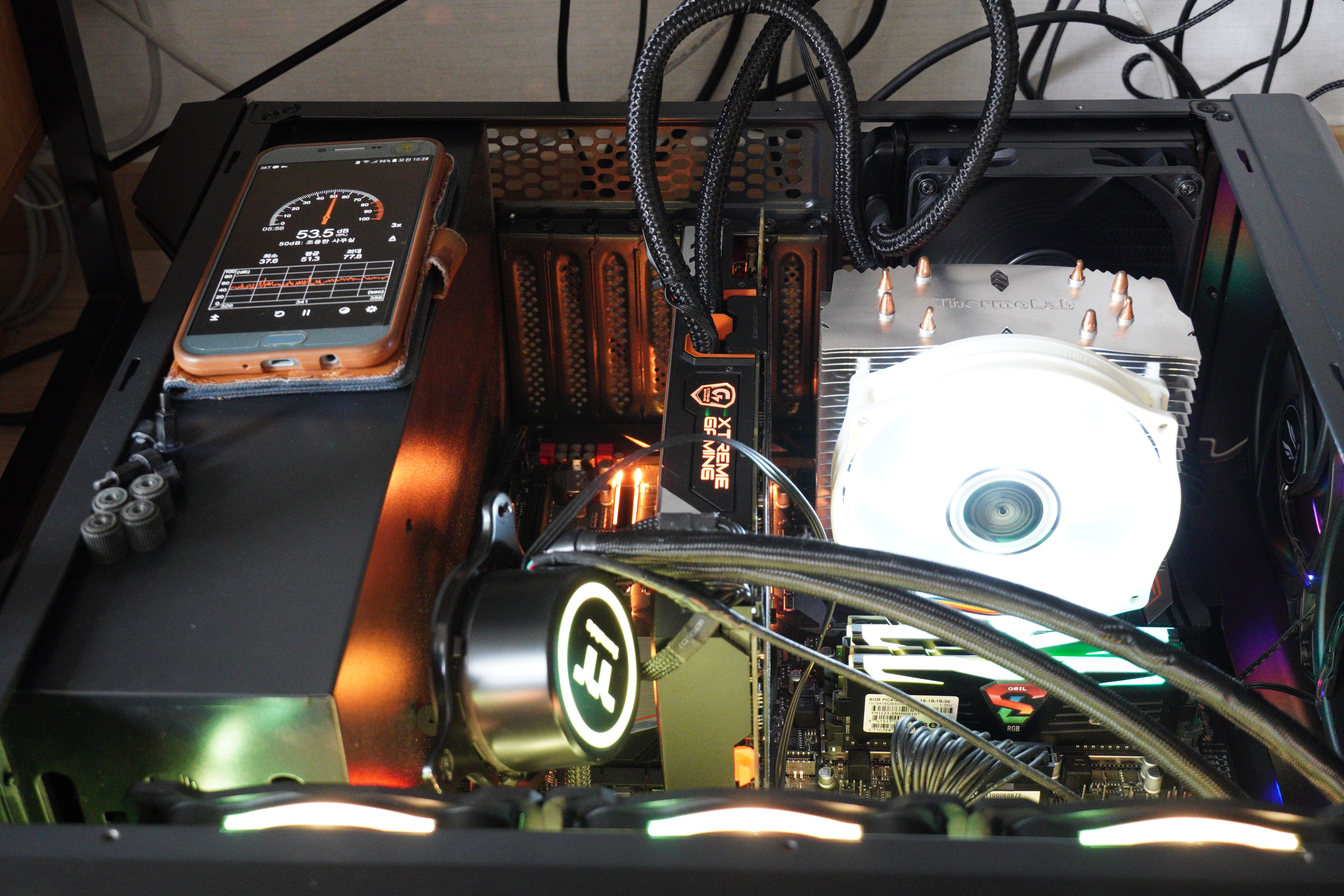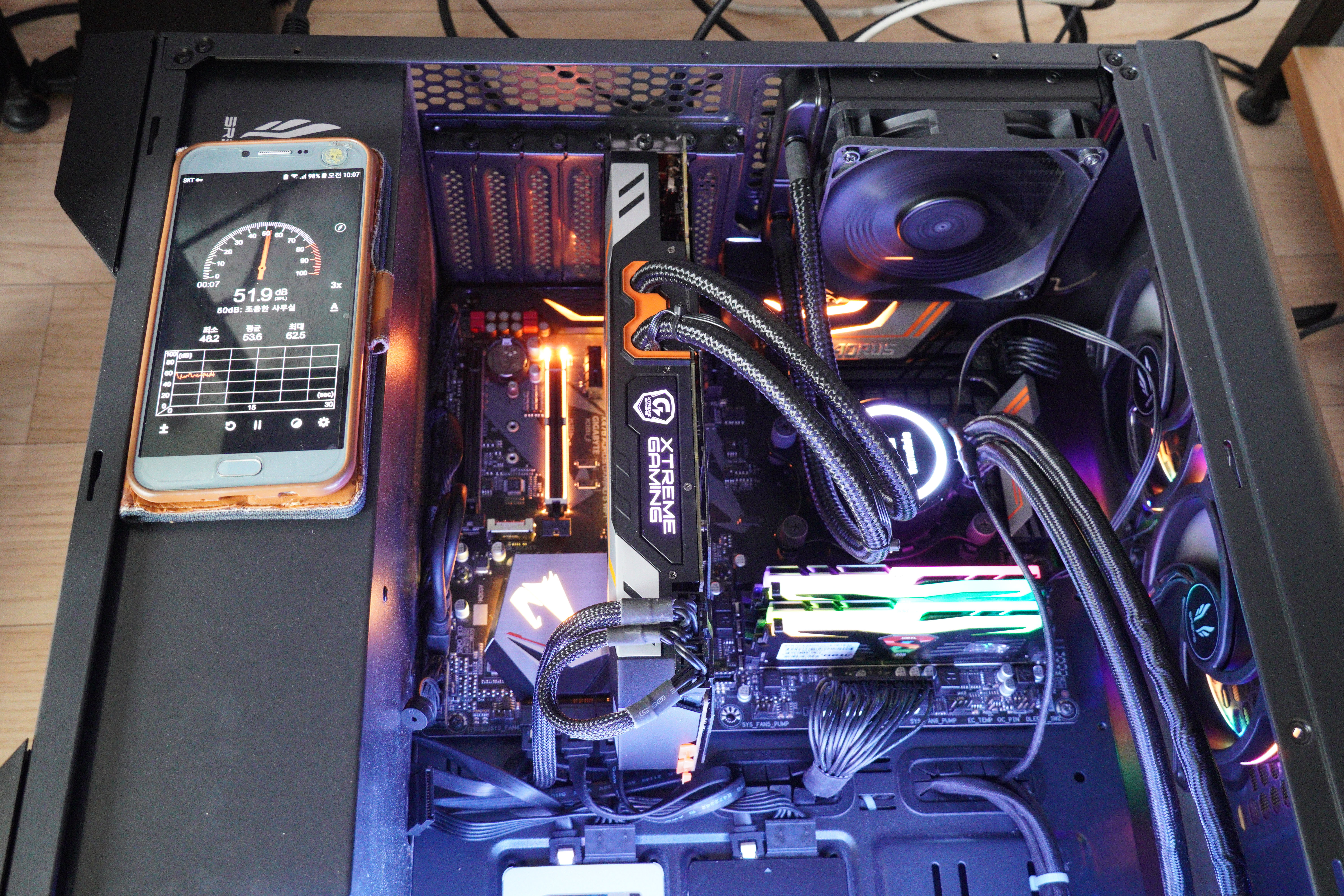 3열 수랭의 펌프소리는 거의 들리지 않아 수랭의 아이들 소음이 팬들 소음이라 생각하시면 됩니다.