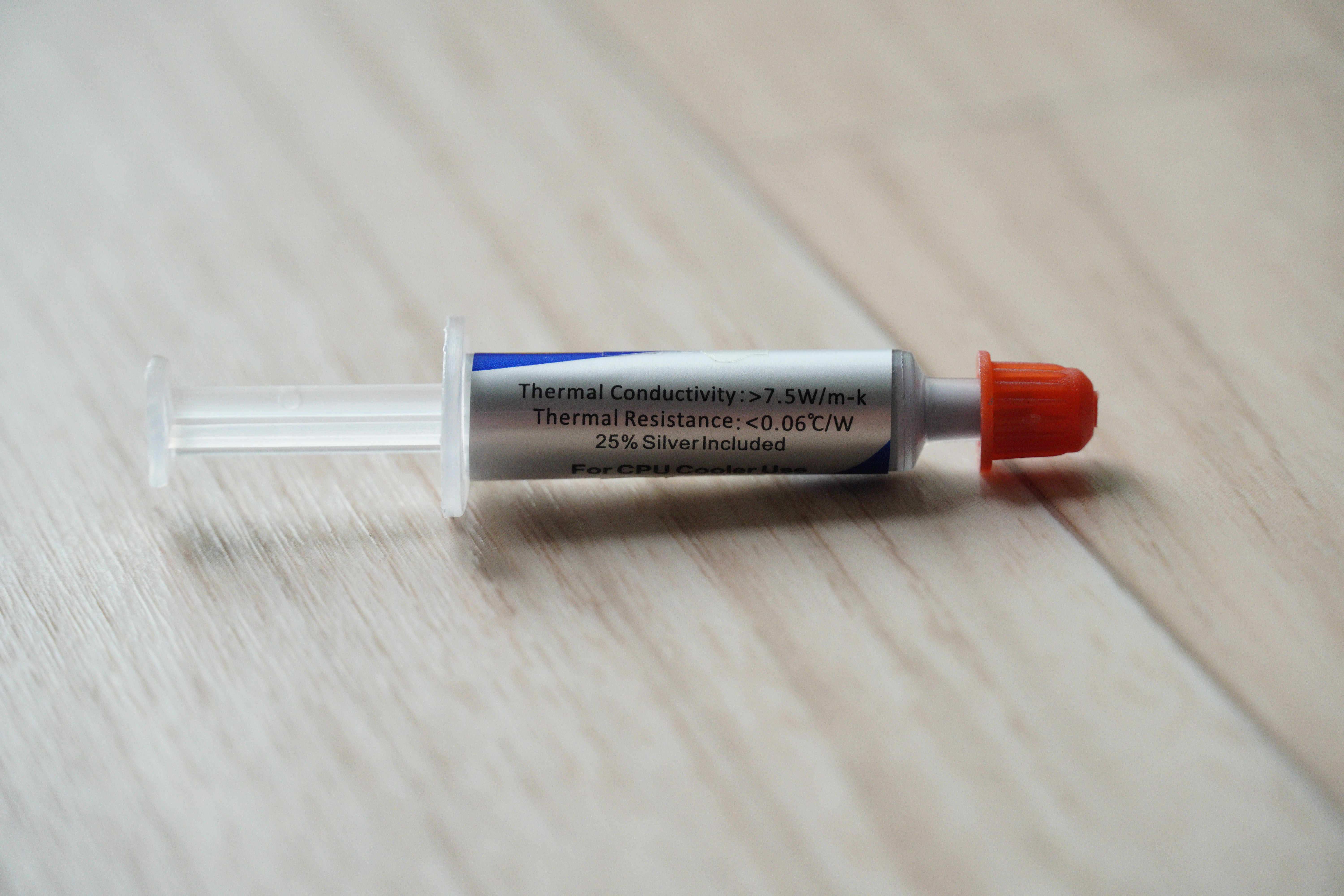 기본 내장된 써멀컴파운드입니다. 은이 25% 들어있고, 7.5W/mk 입니다. 참고로 인기있는 써멀컴파운드인 MX4의 경우 8.5W/mk입니다.