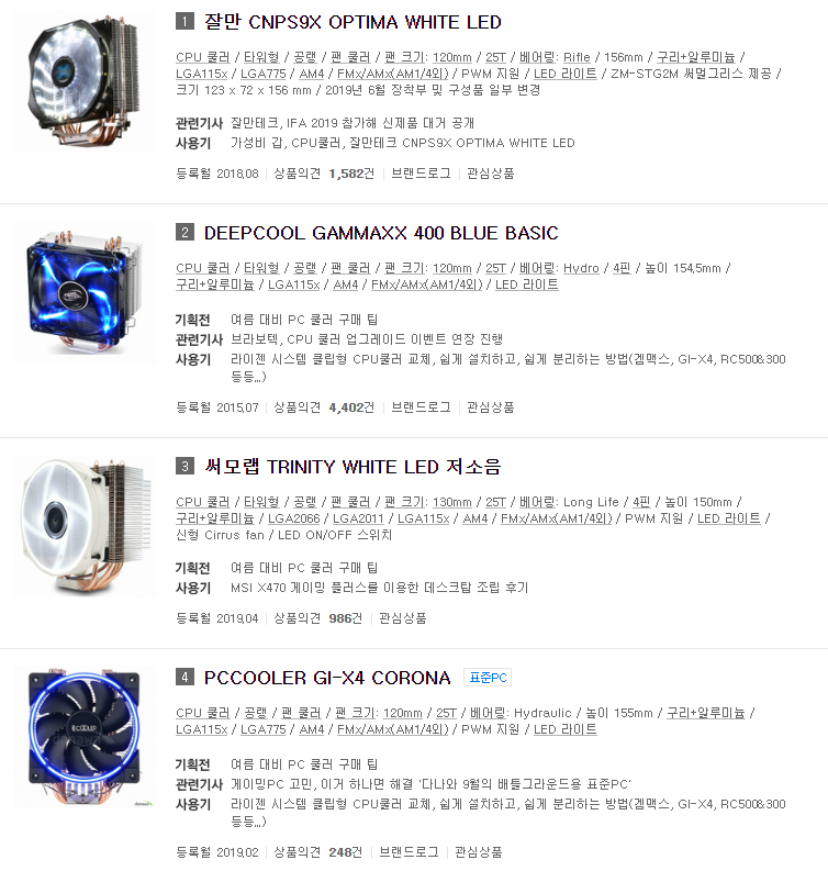 다나와 공랭 쿨러 4위에 등극해있네요. 위에 3개는 다들 인지도가 있는 갓성비 쿨러들이죠.